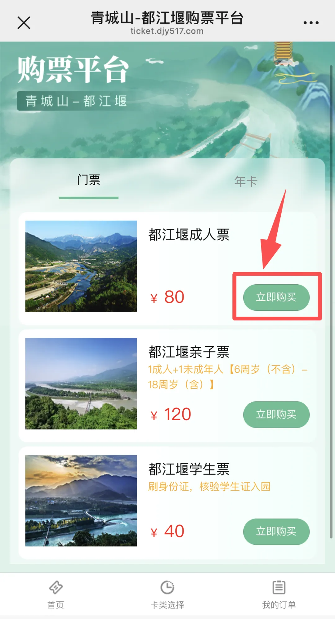 ③选择所要购买的票种;