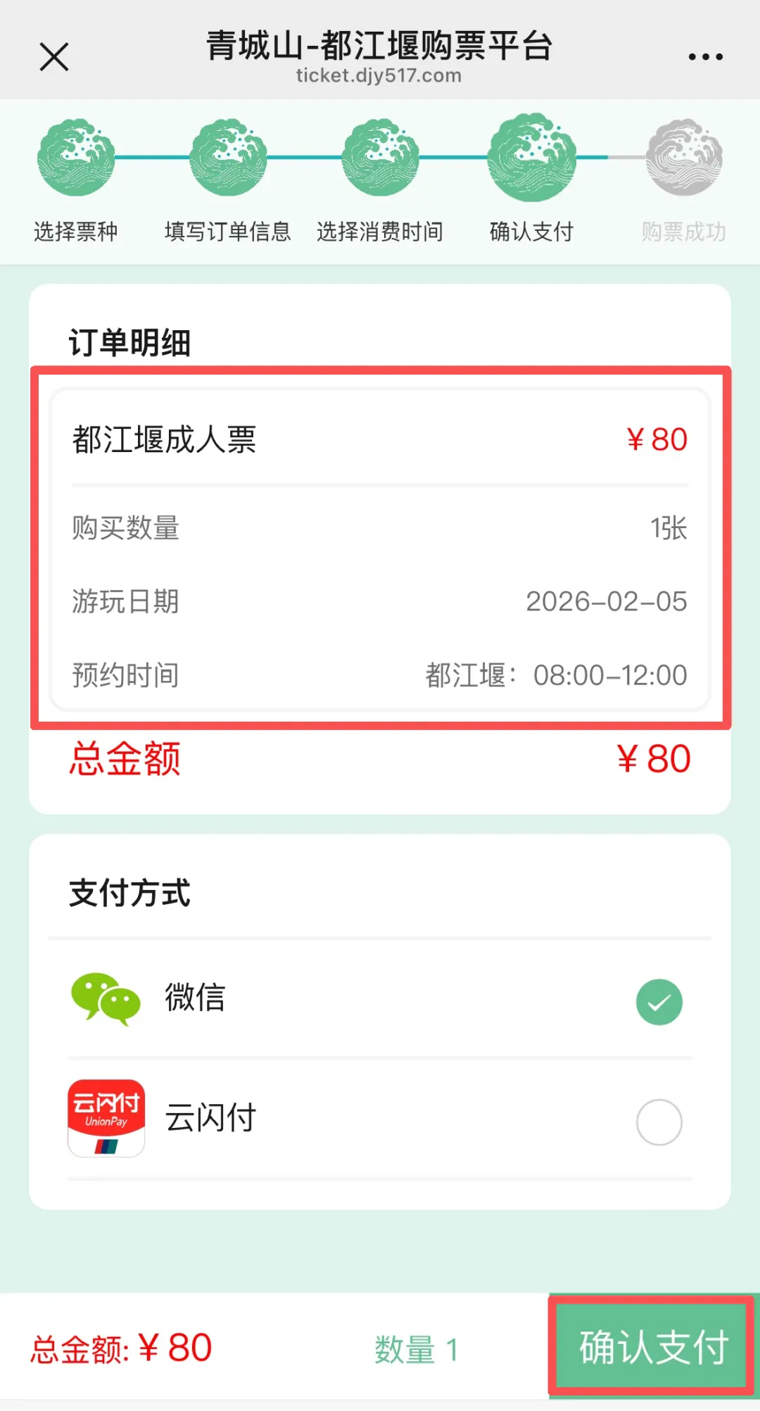 ⑦核对订单明细,然后“确认支付”;