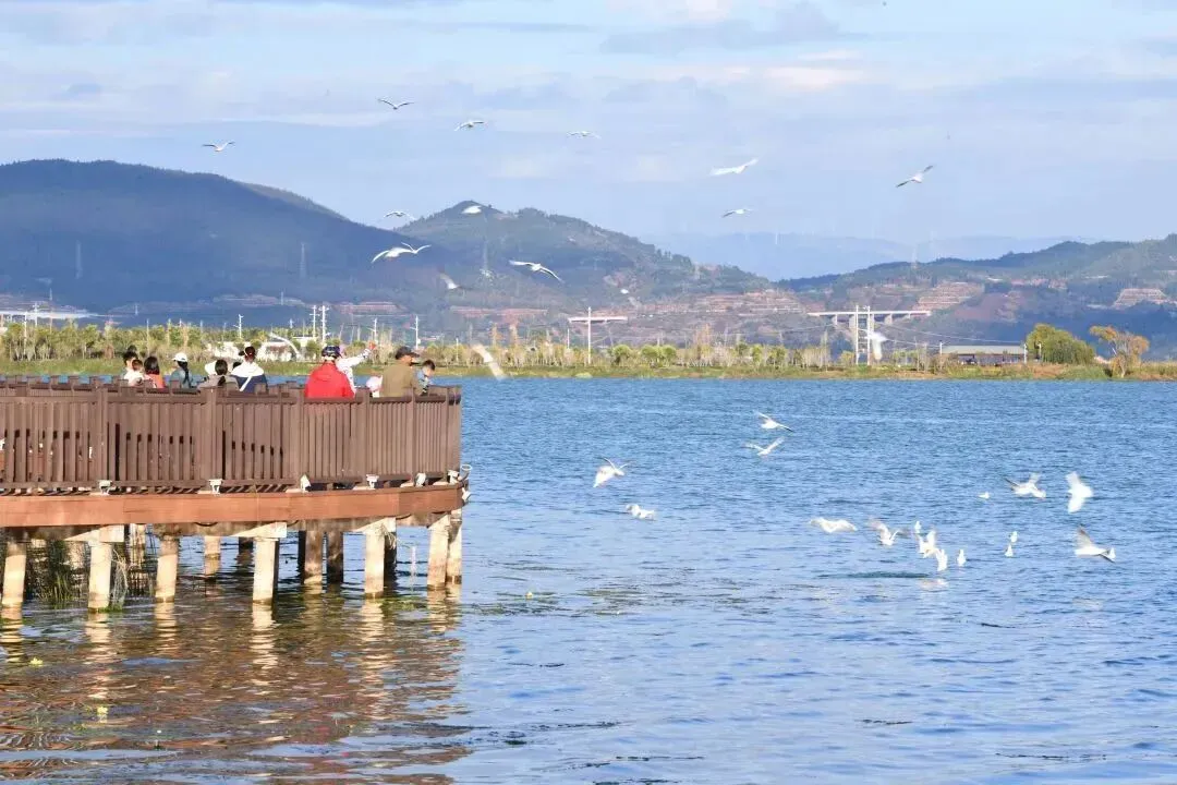 骑行或乘坐电瓶车环游杞麓湖,碧波如镜,远山如黛,偶有鸥鹭掠水,沿途田园村落静谧如画,领略高原湖泊的温润之美。