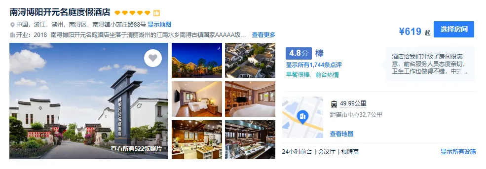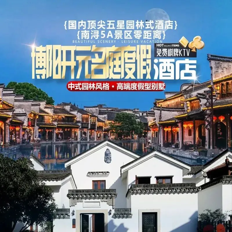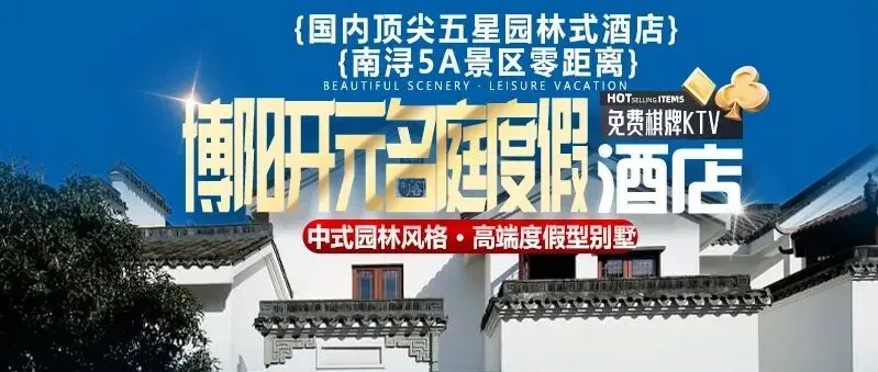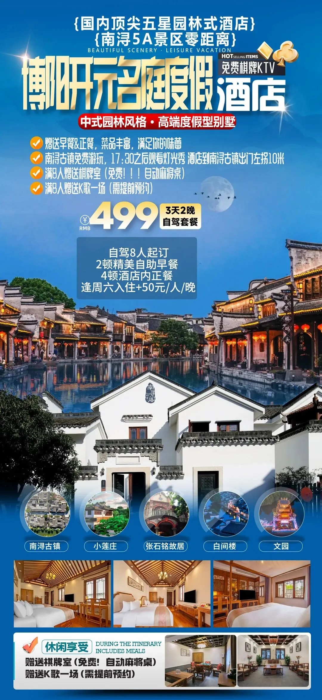 南浔5A景区零距离【博阳开元名庭度假酒店】3天2晚自驾·499元起·8人起订·含2早4正·满8人赠送棋牌一桌以及一场KTV