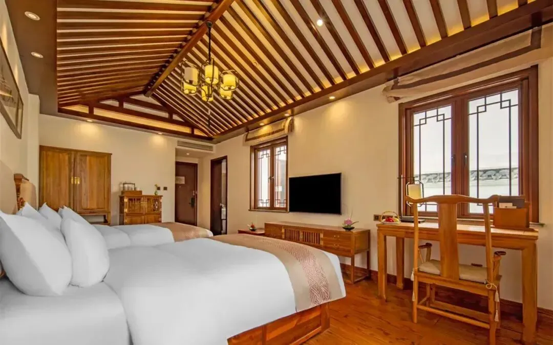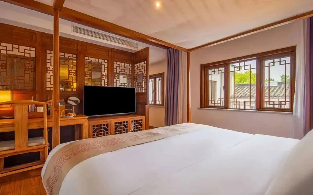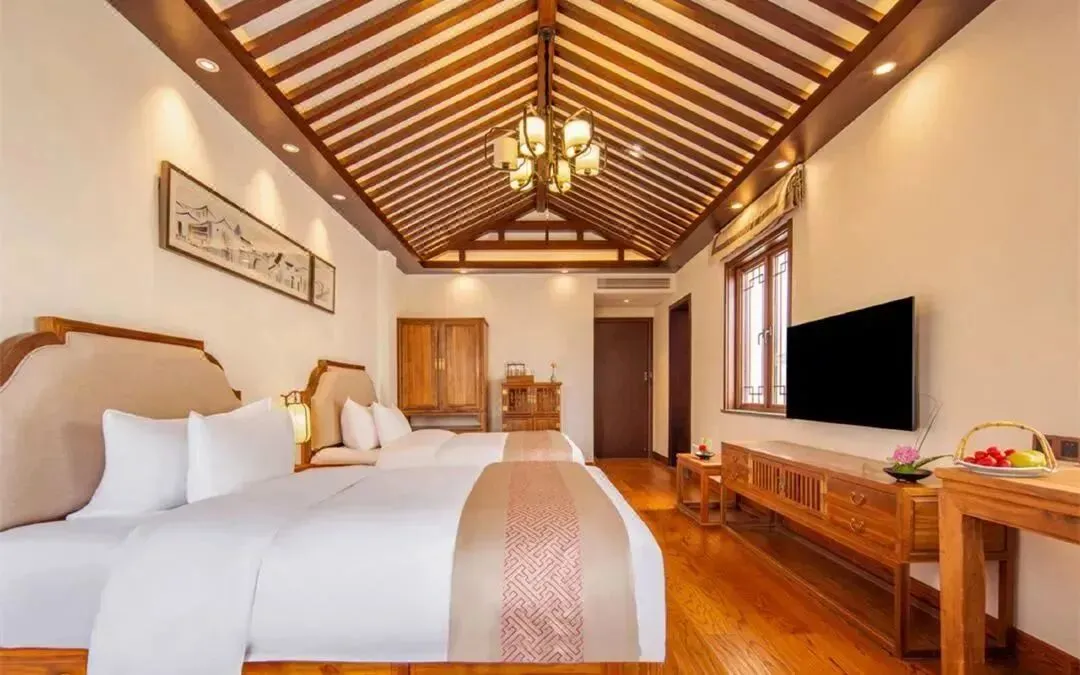 酒店共有166间客房(套房),采用新中式装修风格,富有庭院深深的意趣。客房配有低过敏性的羽绒枕头、定制的护脊床垫和舒适的床上用品。中长榻、岸桌一应俱全。