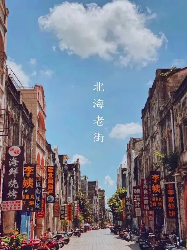 亮点:中西合璧骑楼式建筑,吃货的天堂,街拍的圣地,还可以买买买; (美食推荐:李姨虾饼、付姨蛋散、明英卷粉,还有各种海鲜大排档和糖水铺) 北海老街——珠海路是一条有近二百年历史的老街,始建于1821年,初建时称为升平街,沿街全是中西合璧骑楼式建筑的商业老街。这些建筑大多为二至三层,主要受19世纪末叶英、法、德等国在我市建造的领事馆等西方卷柱式建筑的影响,这些建筑临街的骑楼部分,既是道路向两侧的扩展又是铺面向外部的延伸,人们行走在骑楼下,既可遮风挡雨又可躲避烈日。