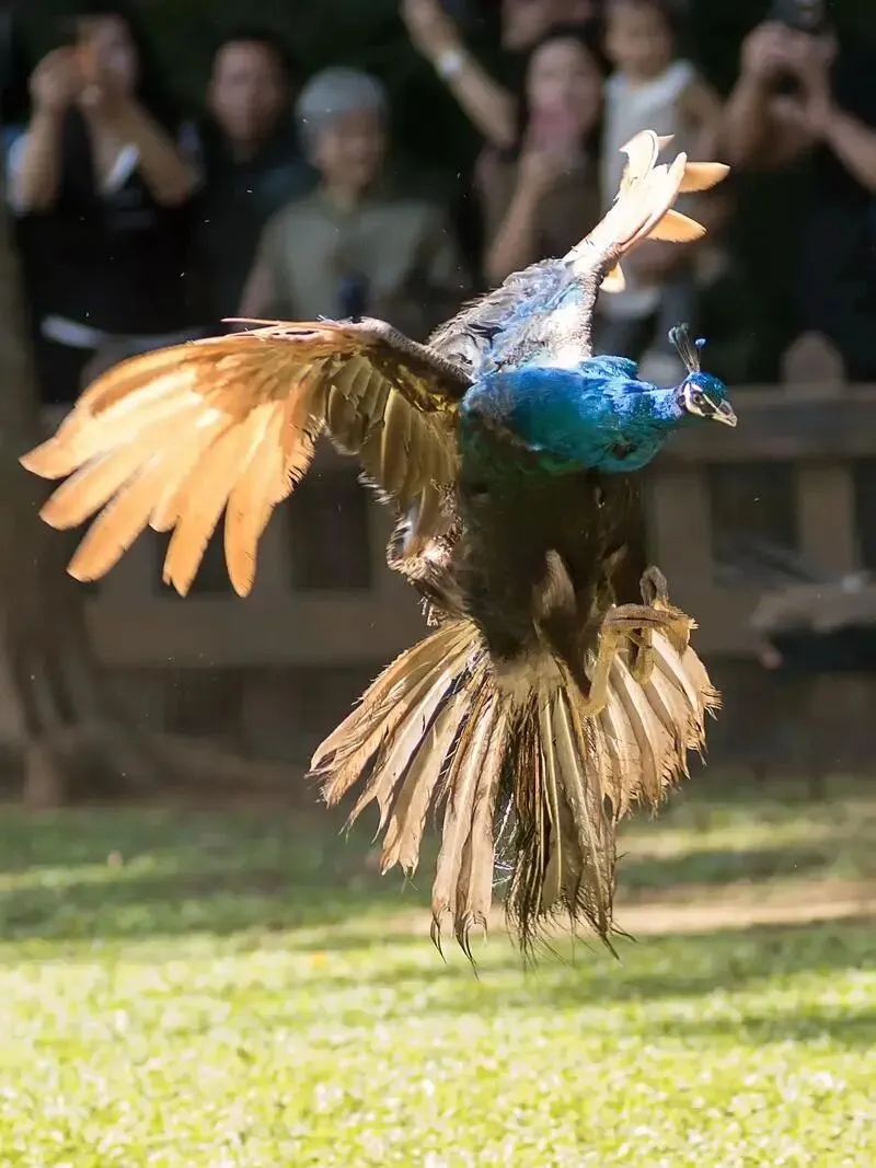 孔雀放飞很热闹,想看就坐前排,羽毛擦肩会痒一下。