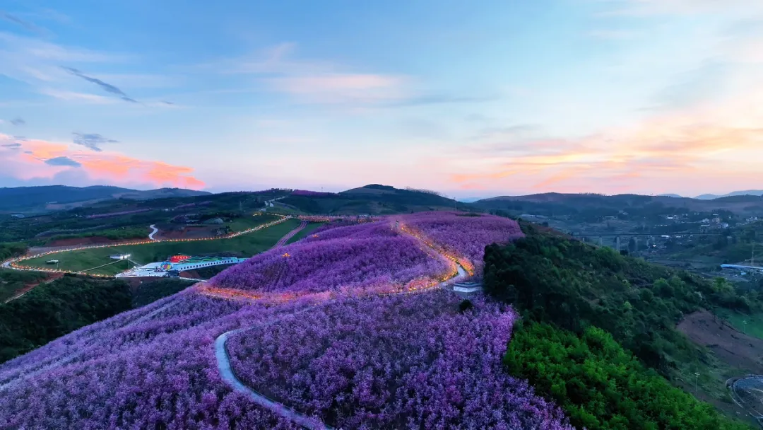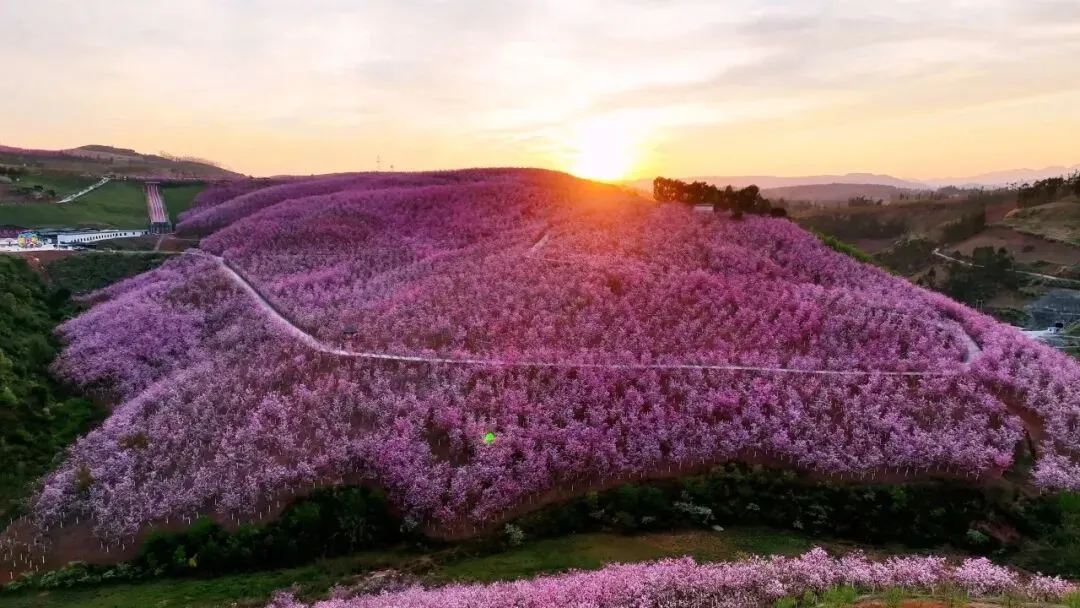 欲识隆冬好时节,试看山后钟樱花。时值隆冬,位于宜良县匡远街道山后社区的樱花谷内,钟樱花进入盛花期,沿山岗次第绽放,粉红斑斓的花朵如吊钟垂挂枝头,漫山遍野的粉色云海与蓝天相映成趣,吸引着八方游客前来观赏。山后樱花谷占地面积约4000亩,共种植60余个樱花品种,花期从每年12月底持续至次年4月下旬,长达4个月之久。其中钟樱花作为中花期主力品种,花期约20天,当前正处于观赏黄金期。正值盛花期的钟樱花,花朵呈独特钟状,花色艳丽夺目,先花后叶的特性让整片山谷被纯粹的红色浸染,风起时花浪涌动,尽显冬日浪漫。为提升游客体验,园区打造了“白+黑”全天候赏樱模式,白天可漫步樱花隧道、登顶玻璃观景台俯瞰全景,夜晚则有灯光亮化工程点亮夜樱。据了解,樱花谷的浪漫还将持续升级。春节前后,数百亩“红粉佳人”将接棒绽放,云南樱花也将陆续登场,形成长达4个月的赏花周期。自驾导航“宜良山后樱花谷”即可直达,周末出游建议早出发避开拥堵。这个冬天,不妨奔赴宜良山后樱花谷,在嫣红钟樱与清新生态的相拥中,领略宜良冬日生态画卷。
