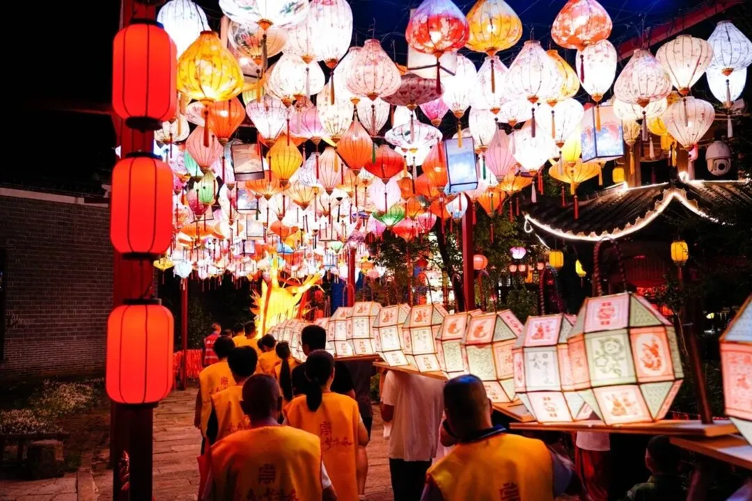 建水古城灯笼次第亮起时,一位带着父母参加“团圆颐养之旅”的中年男子在朝阳楼畔拍下全家福。