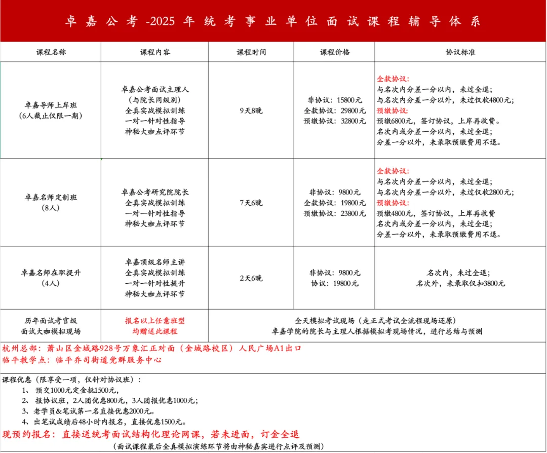 2025年“卓嘉学院”萧山国企面试课程辅导体系 卓嘉学院-2025年浙江省事业单位统考培训课程体系 2025年“卓嘉学院”事业单位面试私教辅导体系 2025年“卓嘉学院”社区工作者课程辅导体系