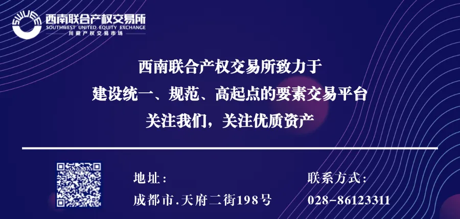 西南联合产权交易所(以下简称本所)接受委托方委托,依照公开、公平、公正和诚实信用的原则,发布项目公告。本所通过微信公众平台和官方网站(http://www.swuee.com/)披露的项目信息均为参考性意见,不构成本所对标的的任何承诺或交易建议。意向投资方应自行判断,并对项目进行实地考察和尽职调查,不应以仅仅基于本所披露的项目信息作出投资决定为由拒绝履行相关义务。