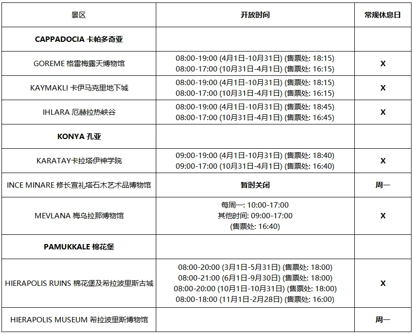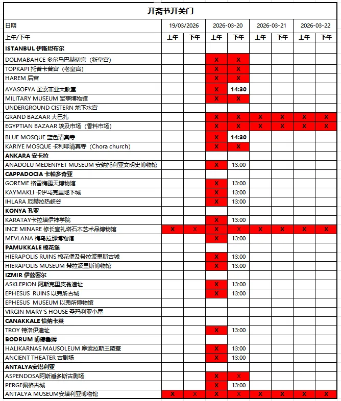 开斋节假期!还有土耳其这些景点的开关门时间你得注意了!以下是2026年土耳其部分常规景点的开关门时间, 尤其是休息日!大家一定要注意,合理安排,不要跑空!