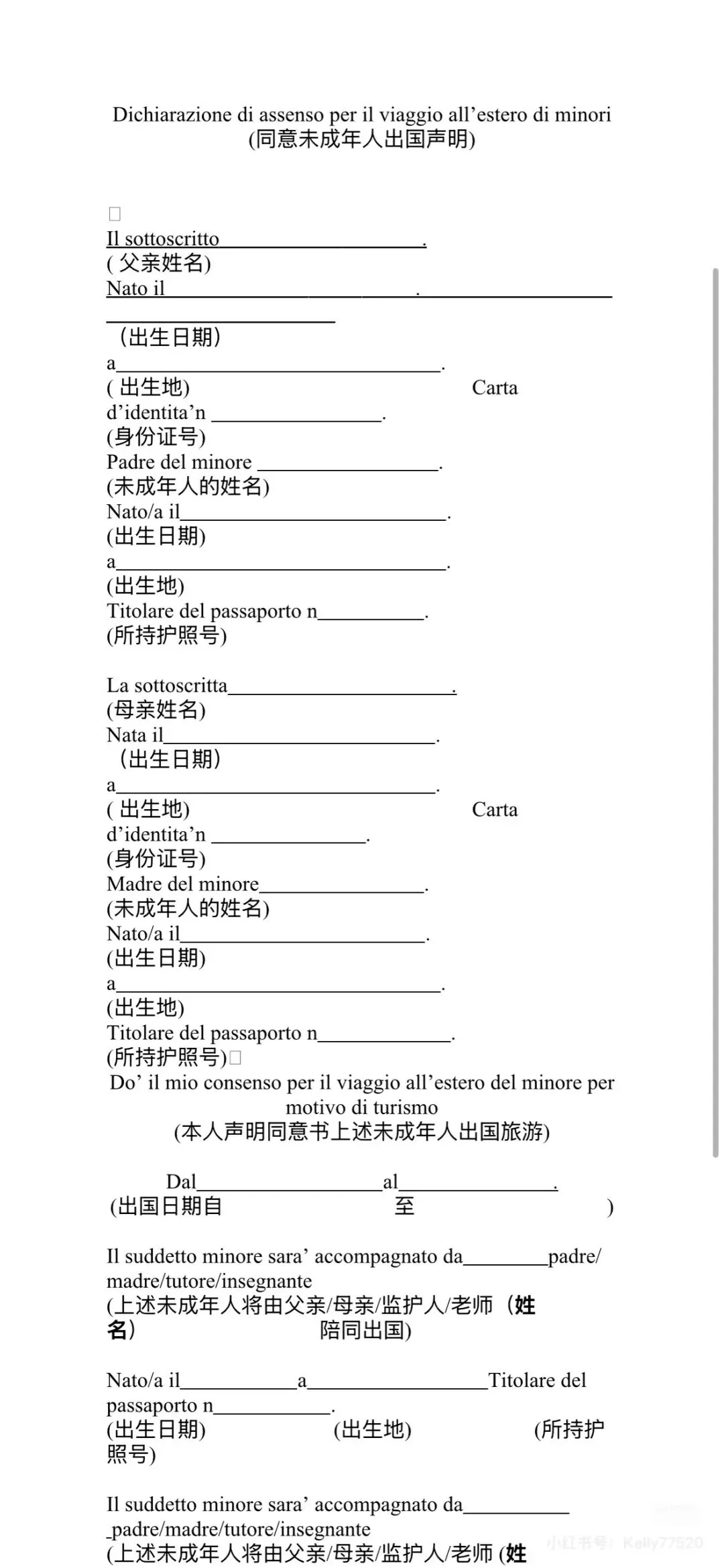 2️⃣一方随行同意出行公证:不管离没离婚,生父生母只要是一个人单独陪孩子出行,这个公证都必须办。❗️生父生母只要都健在,双方都必须到现场签字。同意书是办理的时候双方要在窗口手写的。
