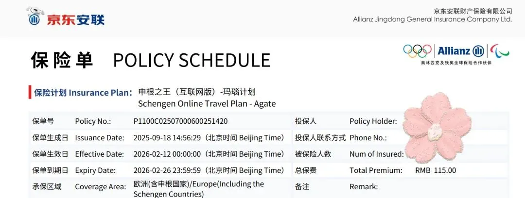 ‼️保险。必须买且彩打,需要覆盖整个旅游期间,京东购买“申根之王(京东安联)”,建议App购买,小程序价格发现不同。拿到签证后可以退掉。