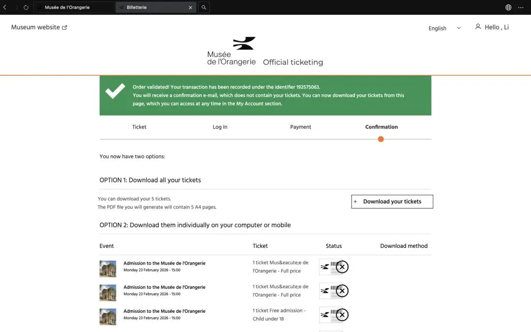 继续点击两次博物馆门票,选择日期、注册,输入信用卡信息付款。