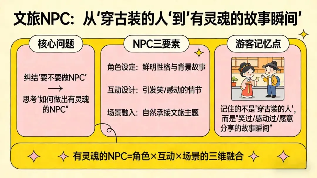 对于文旅从业者来说,与其纠结“要不要做NPC”,不如思考“如何做出有灵魂的NPC”。毕竟,游客记住的不是“穿古装的人”,而是那些让他们笑过、感动过、愿意分享的“故事瞬间”。