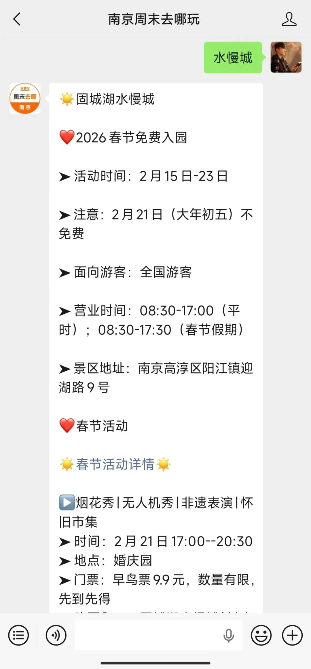 ✅小编提醒:扫描下方二维码,关注【南京周末去哪玩】公众号,私信回复【水慢城】可获取2026固城湖水慢城免票信息、春节活动、早鸟票购买入口等