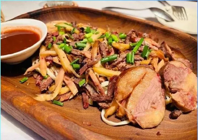 吃的昭苏县城里解决。马肉纳仁端上来一大盘,肉厚实,皮带面劲道,汤鲜得舌头都想吞,三四十一份。熏马肠切片,肥瘦相间,蒜泥一拌,下酒够劲。奶疙瘩酸溜溜,嚼着越嚼越香,当零食吃,十来块一袋。县城巴扎早上热闹,烤包子刚出炉,皮脆肉香,两块五一个,买五个当早饭。