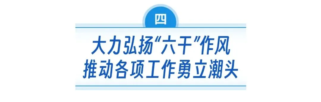 要牢固树立和践行正确政绩观,以“六干”作风不折不扣抓落实,争创全系统共担使命、共谱新篇、携手奋进、万马奔腾的生动局面,推动文化广电旅游各项工作扬长补短、乘势而上,以勇立潮头之姿敢作善为,奋力走在全国前列。