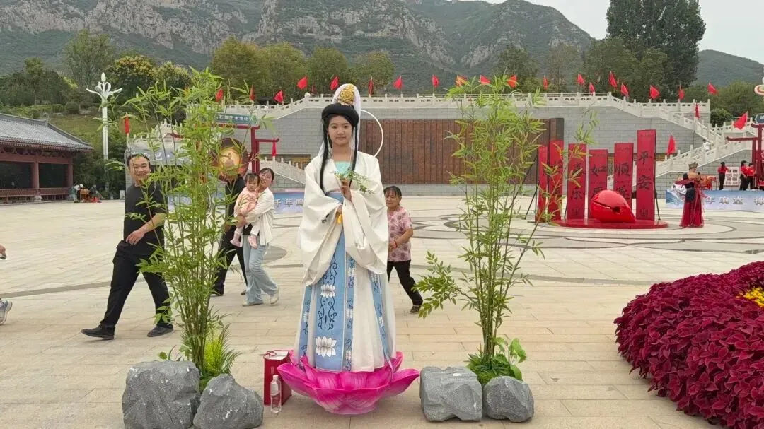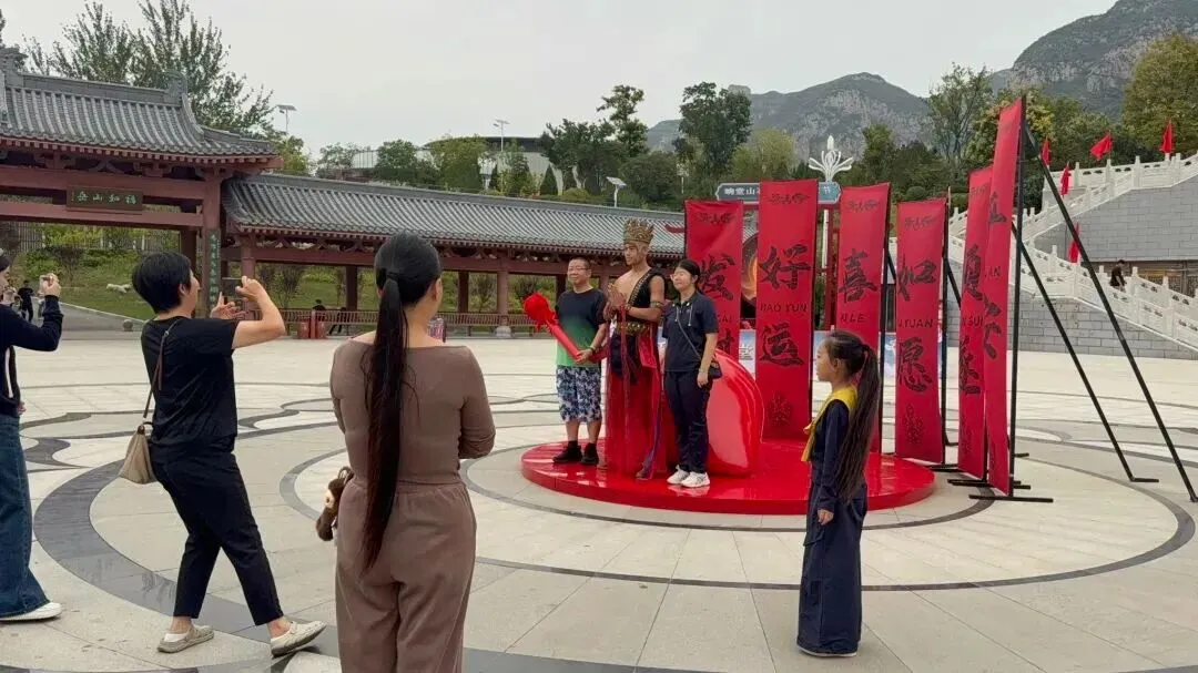 在山门、金鼓广场等关键节点,身着古装的NPC与游客互动成景区风景线。
