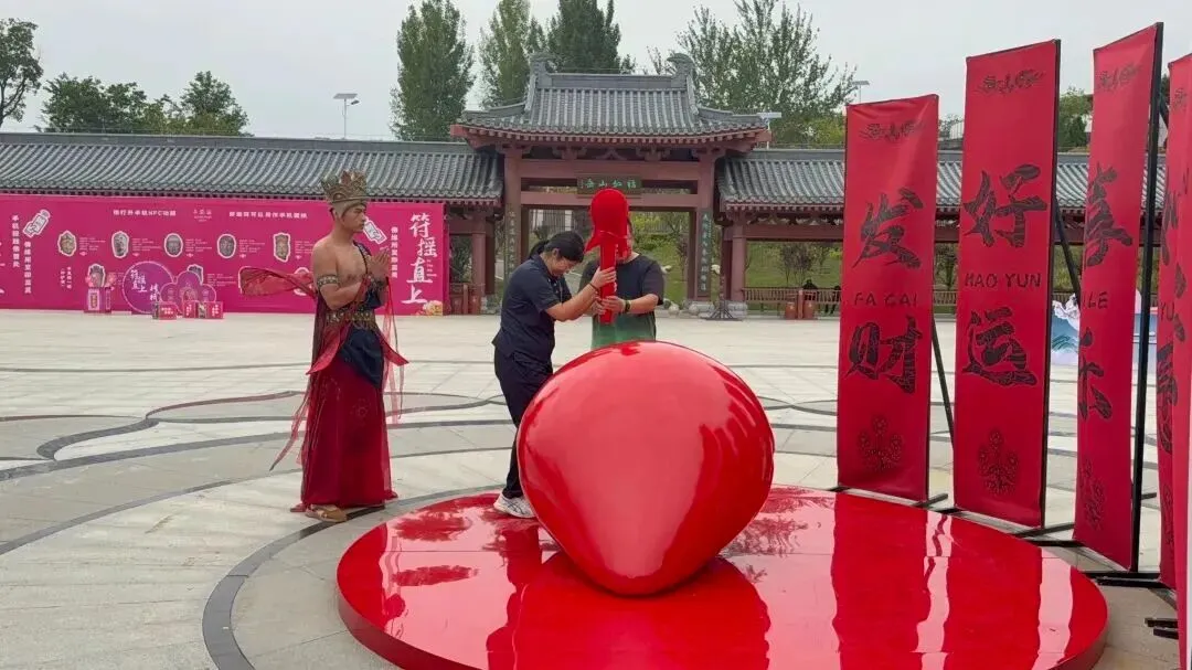 他们提供任务指引,送国庆祝福和特色小礼品,营造浓厚节日氛围。金鼓广场的木鱼装置前游客排长队,争相敲击木鱼拍照留念祈求好运。