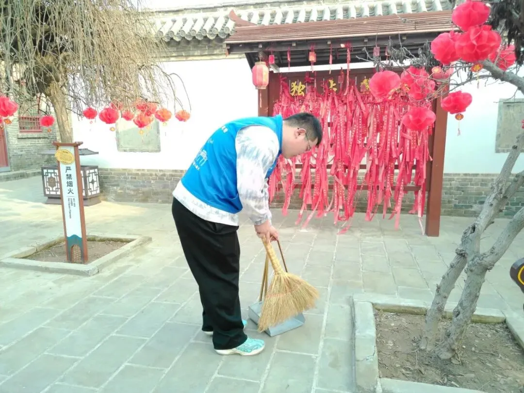 活动期间,每天将有17名志愿者坚守岗位,深入景区各服务点位,围绕环境维护、游览引导、文化宣传与游客帮扶等核心任务开展工作。在闸口、展厅、院落等公共区域,志愿者们主动承担日常清洁与秩序维护工作,协助景区悬挂红灯笼、布置新春装饰,让景区洋溢着浓厚的节日氛围;在主要参观点设立的志愿服务岗上,他们耐心为游客提供路线指引、信息咨询等便利服务,同时适时开展运河文化科普、古迹保护理念宣传,让游客在游览过程中感受临清深厚的文化底蕴。