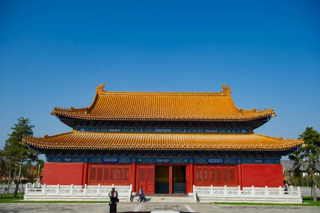 沿着中轴线往里走,红墙黛瓦的古建群落顺山势延展,金色琉璃瓦在阳光下泛着温润的光泽,与终南山的苍翠形成绝妙呼应,你能想象得出在这里拍照巨出片的感觉吗?