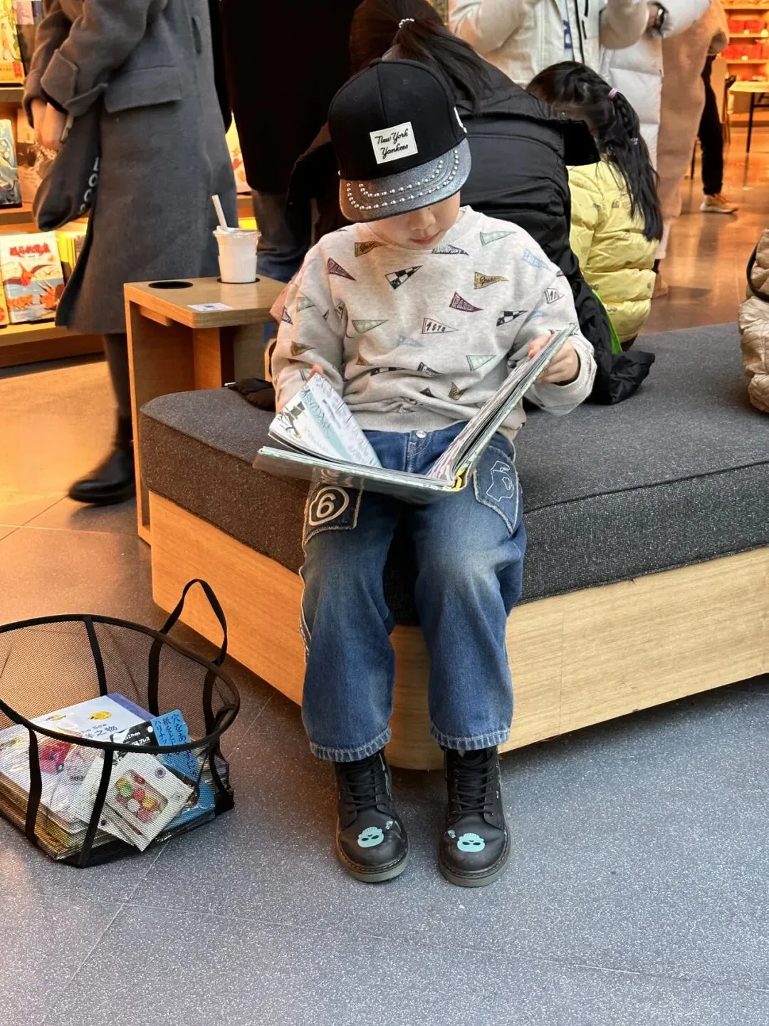我本来想说要不先去看xx吧,结果一转头俩小朋友已经各自捧好书一个站一个坐看了起来。