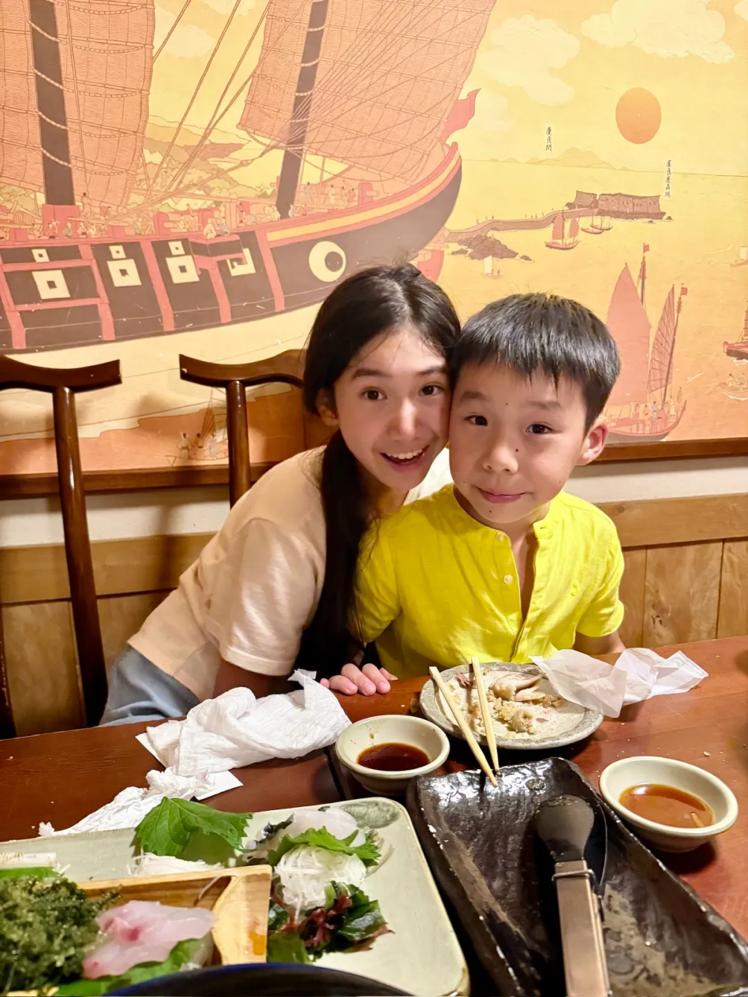 现在,他们甚至会主动和服务员、厨师交流。我记得有次吃日料,姐弟俩就跟厨师聊嗨了,差点都顾不上吃。