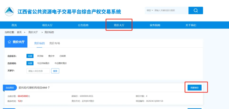 ③用户登录系统后,进入竞价大厅,找到要报价的项目,点击【我要报价】