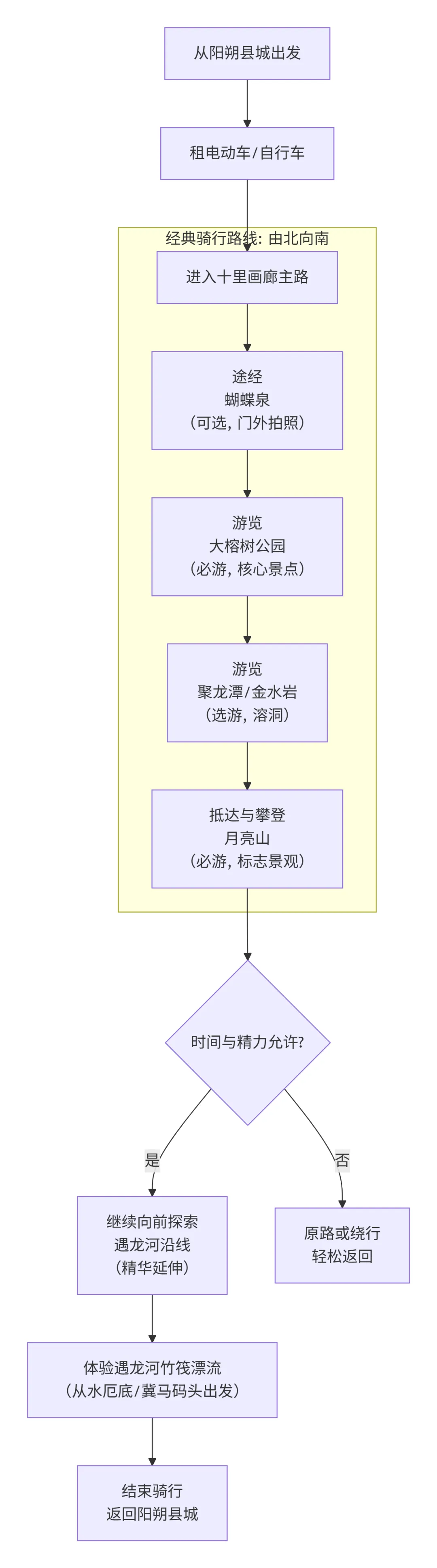 下图清晰地展示了十里画廊的经典骑行路线、主要景点分布与游玩逻辑,让你一目了然:
