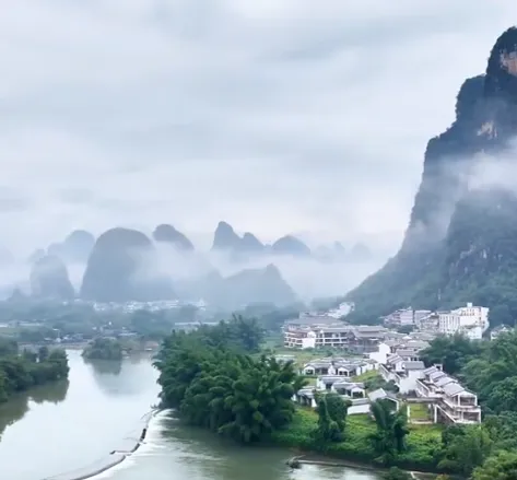 说明:十里画廊与遇龙河景区交汇。强烈建议从主路拐入河边步道,风景更为秀美宁静,是拍摄山水倒影的绝佳地点。