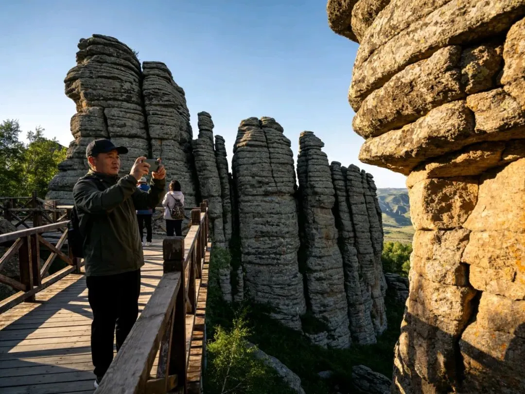 跟云南石林完全不一样,这儿的石头一层一层的,跟“千层饼”似的,全是冰川一点点雕出来的,站在山上往下看,密密麻麻的石林立在草原上,气势绝了,逛一圈既能涨见识,又能拍大片,绝对值回票价。