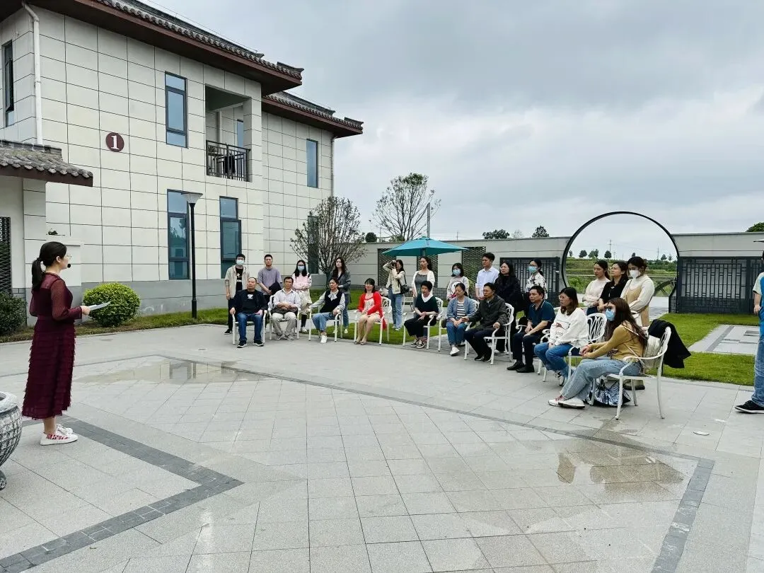 大家来到河南省茶产业示范基地、河南省生态休闲农业旅游新地标—致汕茶溪谷。在茶溪谷,大家感受到了乡村振兴示范区的巨大变化。学工党支部书记胡玲开展沉浸式党课《牢记殷殷嘱托,荒山结满“幸福果”》,带领大家重温习近平总书记考察时的重要指示精神,总结了槐店乡政府和人民在牢记“两个更好”殷殷嘱托,探寻绿色发展之路等方面的经验做法与启示,号召广大教师党员发挥职业优势与专业特长,助力乡村旅游发展,推动乡村振兴。