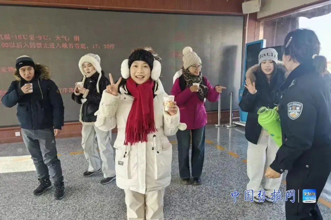 来自广东的游客王女士双手捧着热奶茶,脸上洋溢着幸福的笑容:“第一次来张掖旅游,本来还担心适应不了西北的寒冷,没想到刚入园就收到了民警递来的热奶茶,不仅暖了手,更暖了心,太贴心了!”一句简单的夸赞,是对民辅警工作的最大肯定,也彰显了警民之间的温情暖意。