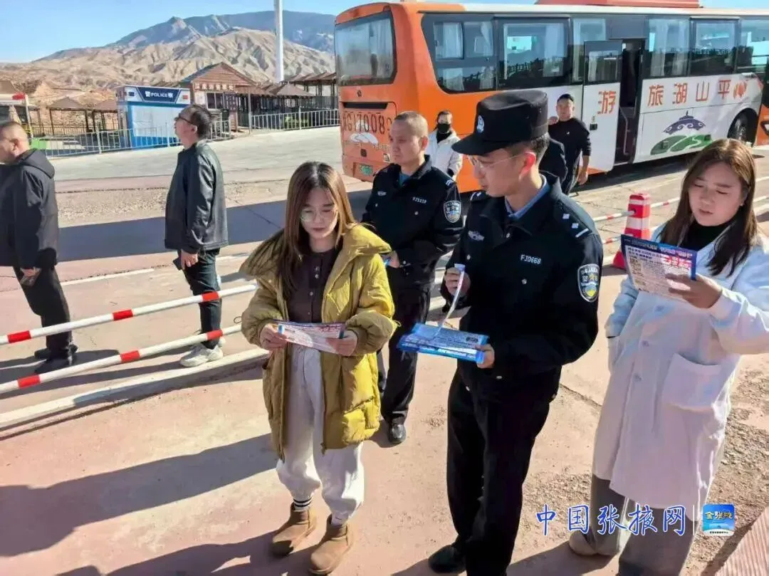 寒冬料峭,朔风凛冽,张掖市平山湖大峡谷景区以独有的壮阔与苍茫吸引八方游客慕名而来。为切实筑牢冬季景区安全防线,守护游客出行平安,张掖市公安局甘州分局平山湖派出所立足冬季旅游特点,创新推出“暖饮服务+反诈宣讲”双驱模式,将贴心服务与安全守护融入寒冬旅途,用藏蓝坚守为游客送上一份温暖与安心。