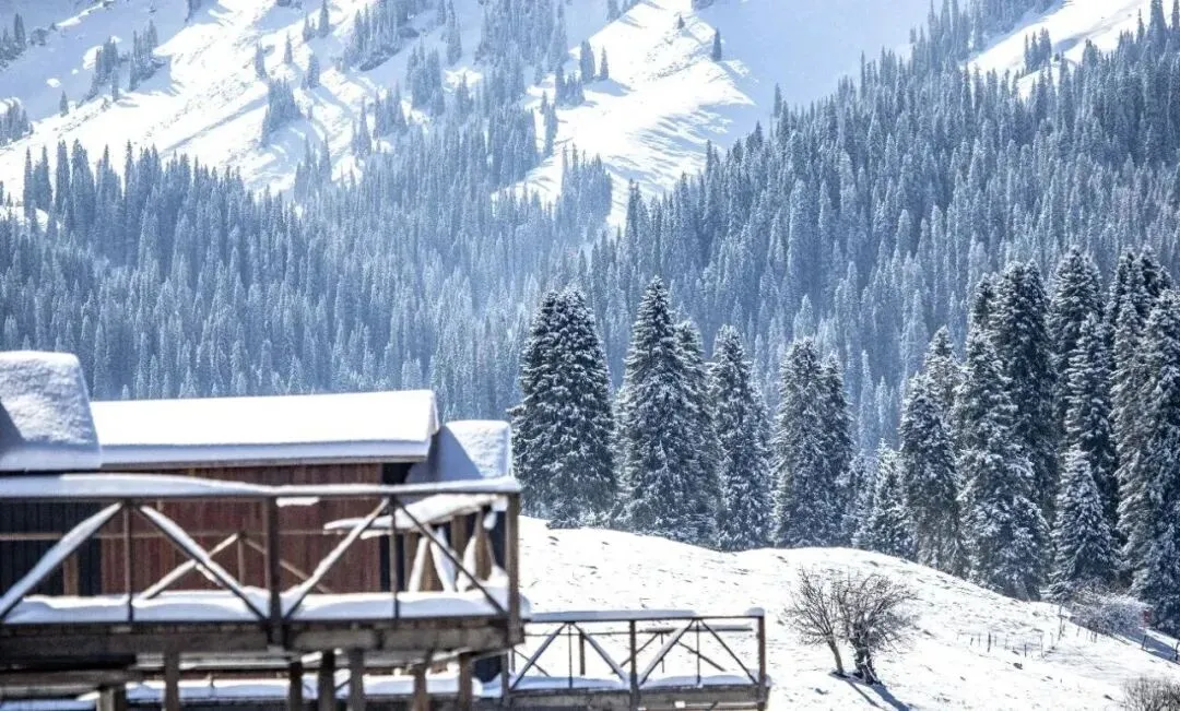 早春的库尔德宁,是一篇写在雪原与云杉之间的散文,由于独特的地理位置,新疆·柏睿营地虽然处于雪山脚下,却能避免遭受雪山谷风的冲击。
