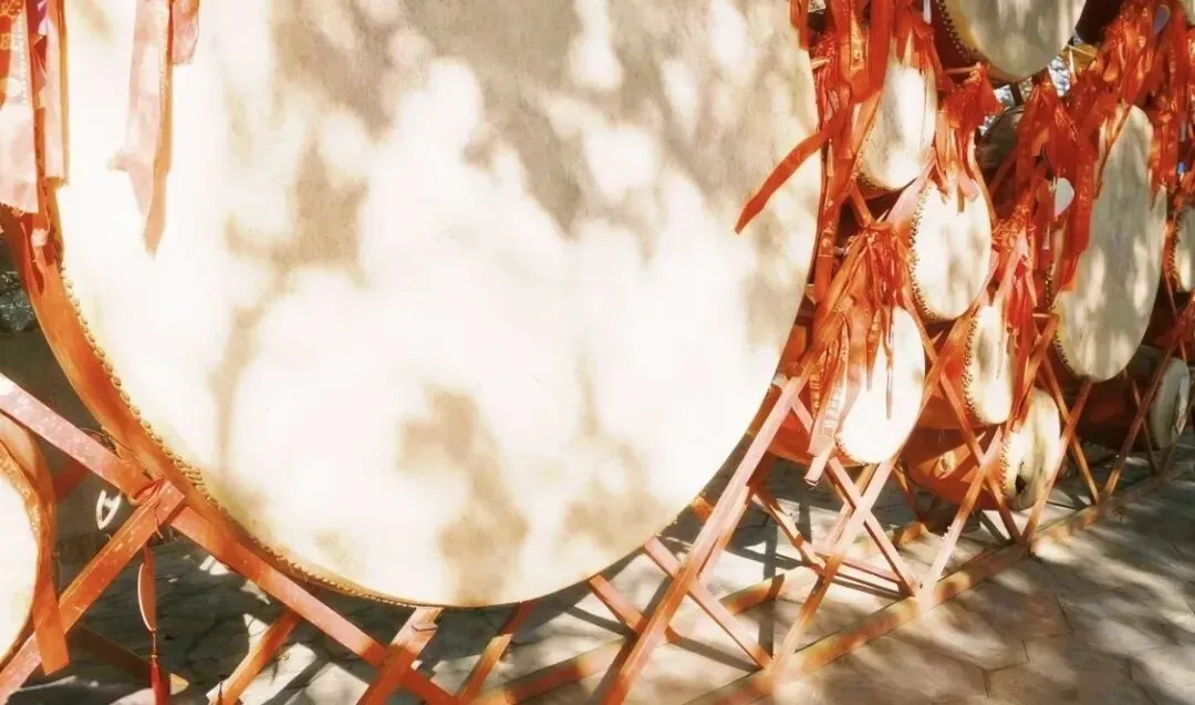龙山岛钟楼的鼓墙与许愿树挂满了红色丝带,风一吹就轻轻摇曳。