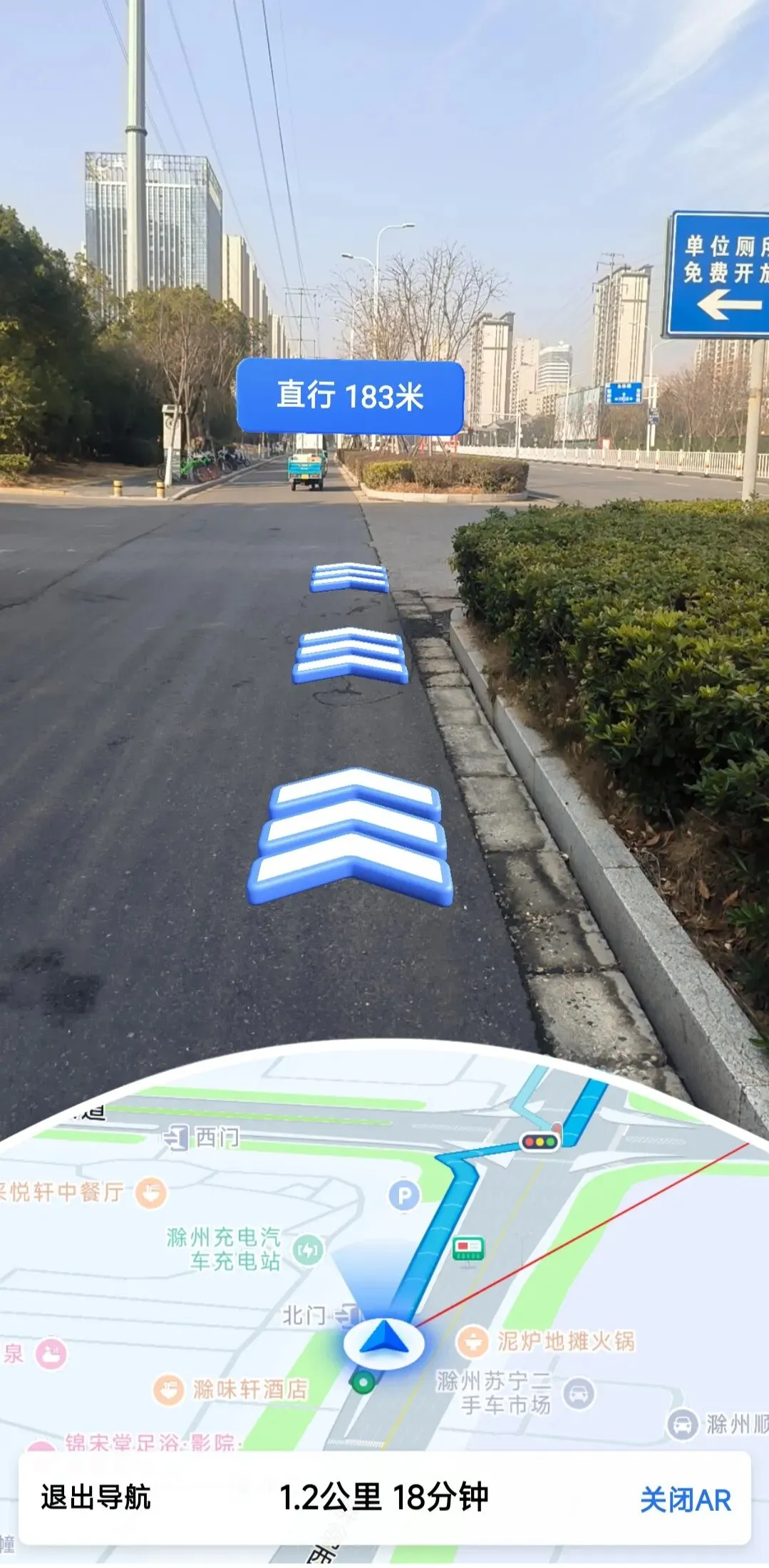 开启后,手机摄像头对着前方,屏幕上会叠加虚拟箭头、路线提示,就像有人在前面带路一样。左转、右转、直行,一目了然。