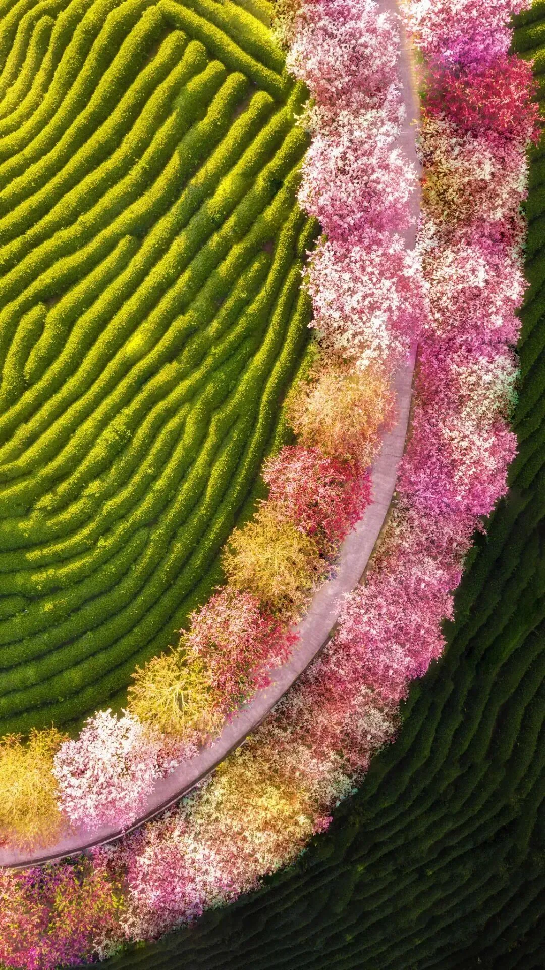 福建永福的茶园栖着粉云。茶垄如碧线,樱花沿垄绽放,白的雅淡,粉的娇柔。花瓣飘落在新抽的茶芽上,空气里漫着茶香与花香的交融。