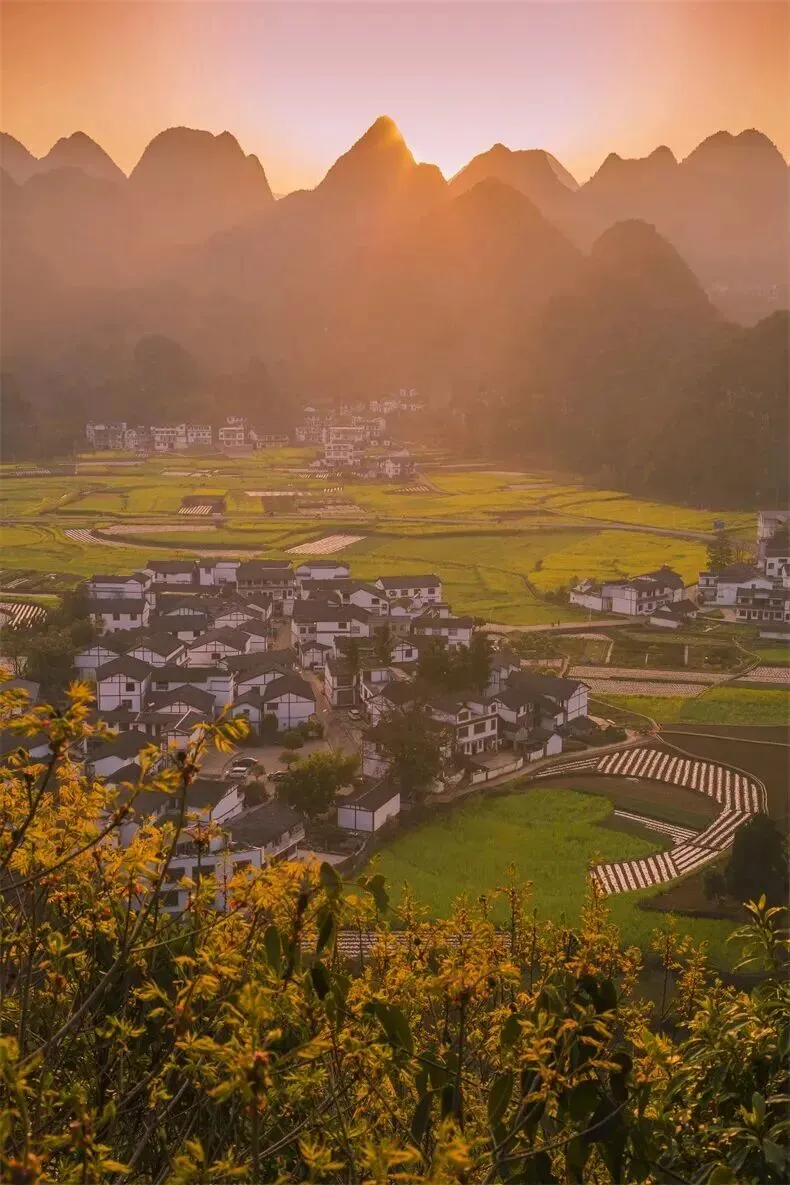 贵州兴义的万峰林卧着春图。八卦田的油菜花晕开嫩黄,群峰如黛簇拥着村寨。马岭河峡谷的瀑布溅起水雾,沾湿途经的衣角,润透山间的草木。