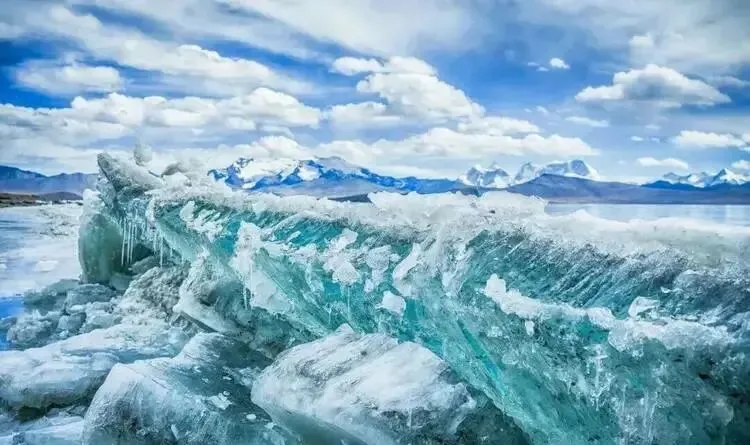 西藏普莫雍措的湖面嵌着蓝冰。喜马拉雅山脉环伺,冰面裂出细密纹路,阳光穿透时泛着剔透的蓝。远处雪山皑皑,风过冰面的声响,是高原独有的絮语。