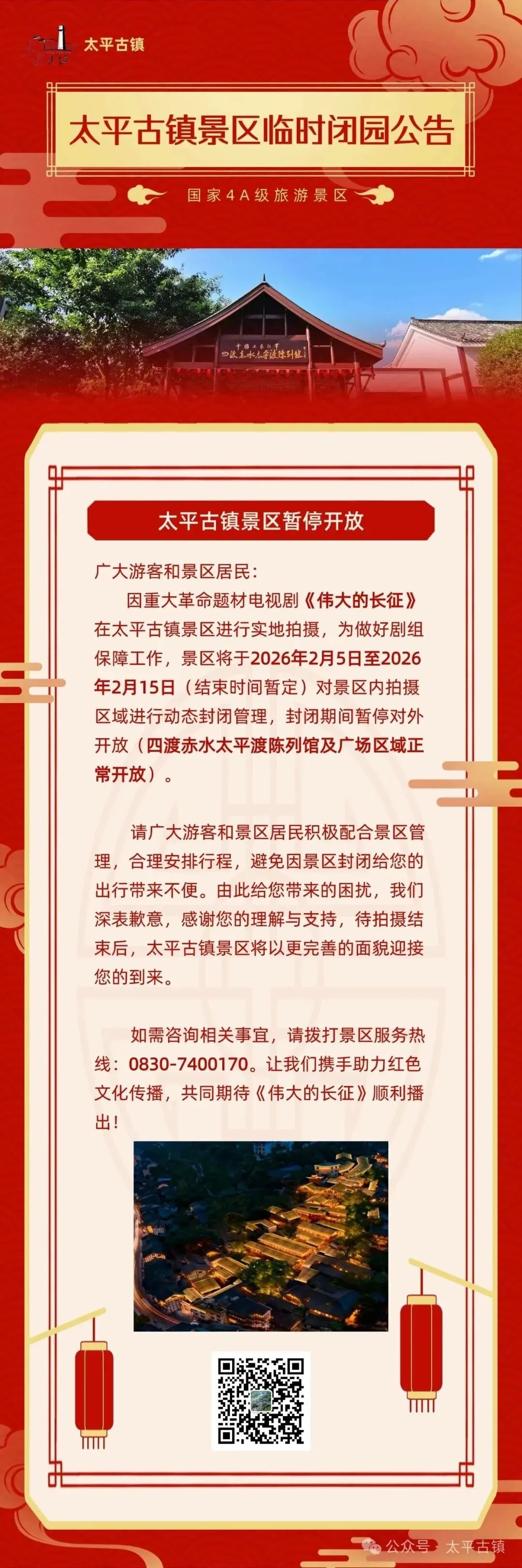 太平古镇景区,临时闭园