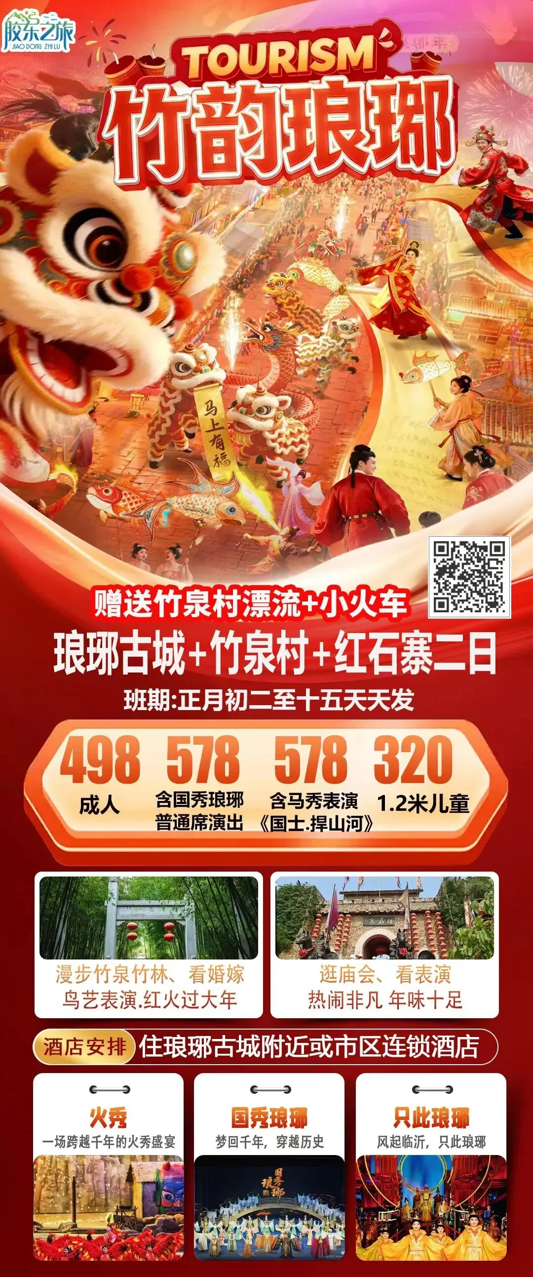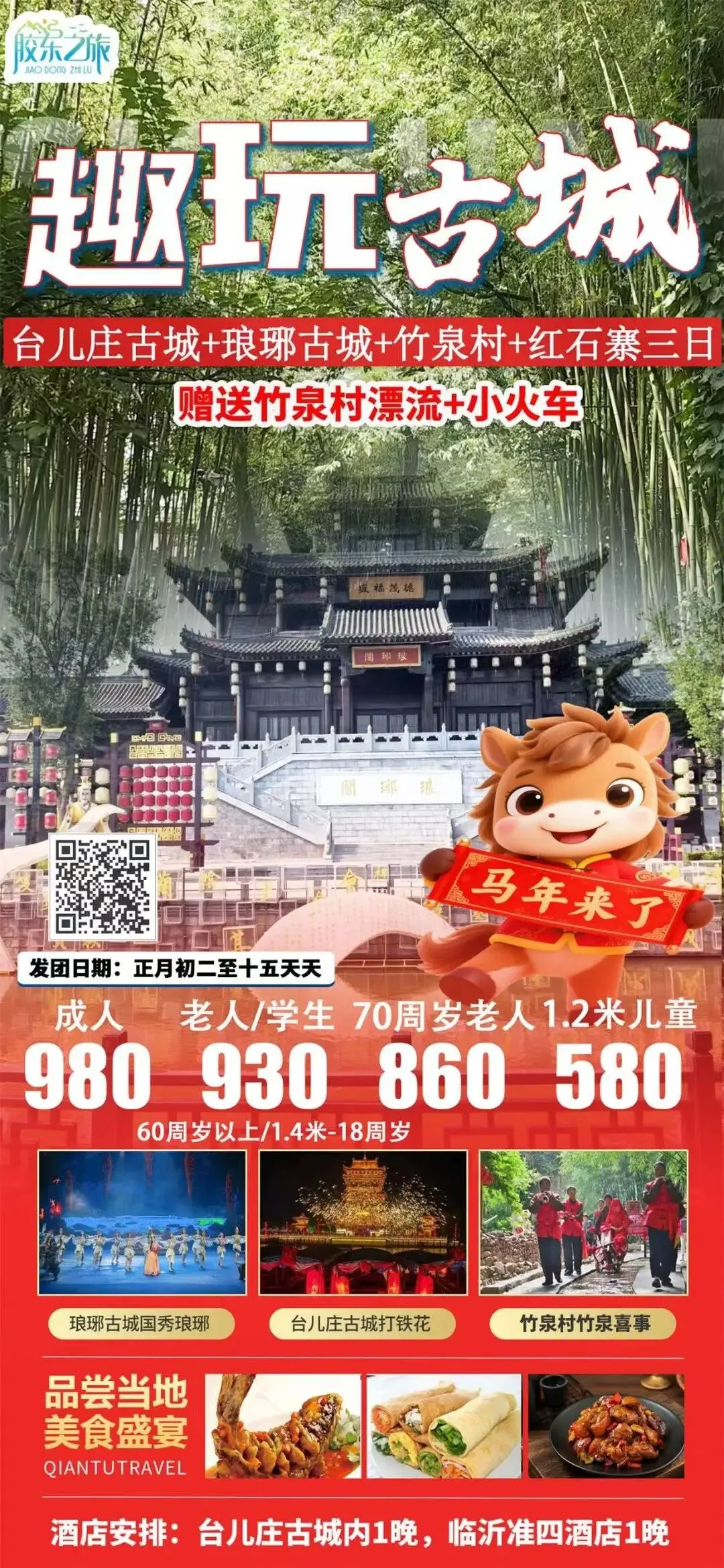 2.台儿庄+竹简博物馆+琅琊古城+竹泉村+红石寨三日游