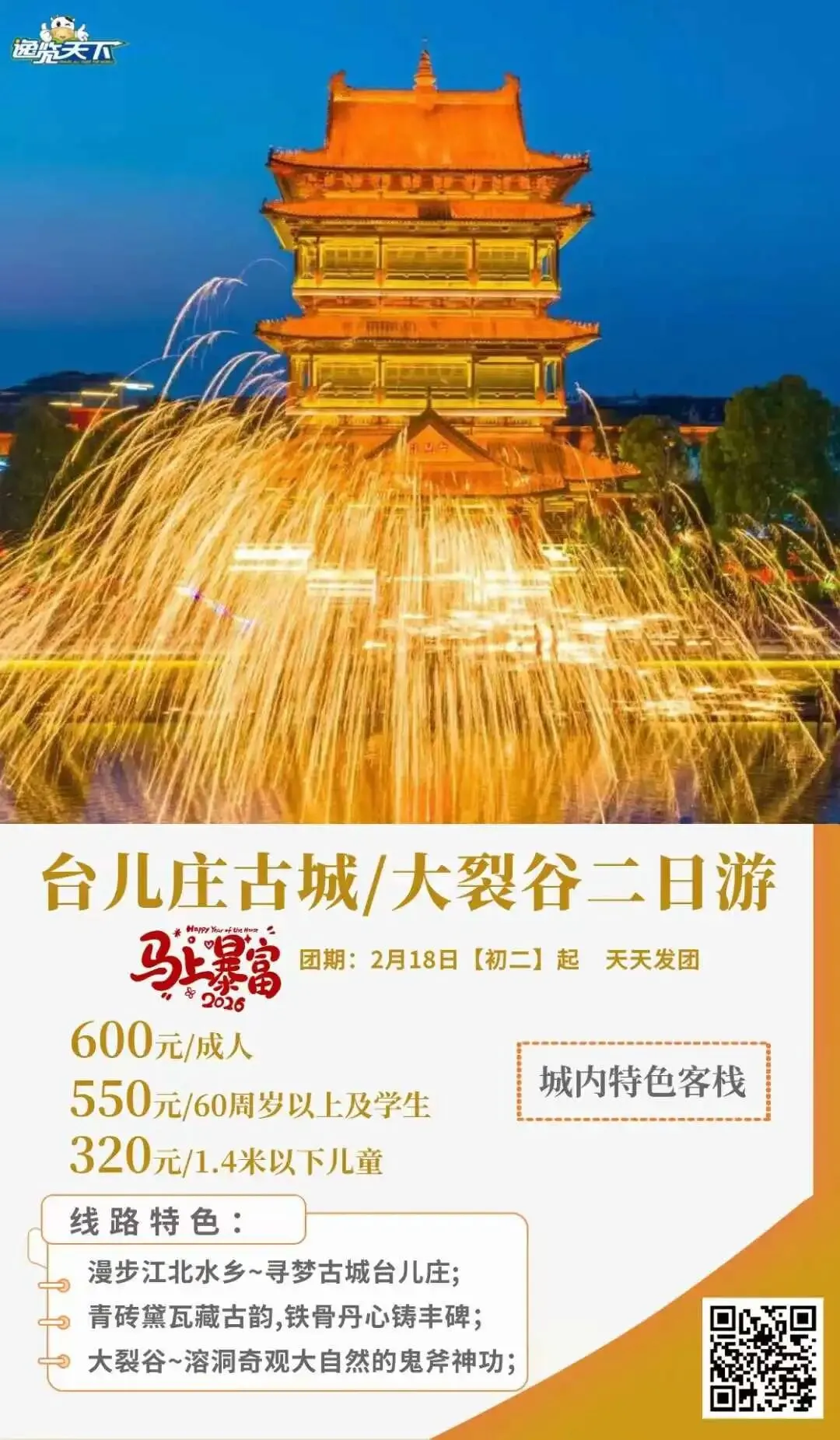 1.台儿庄+大峡谷+萤火虫水洞二日游