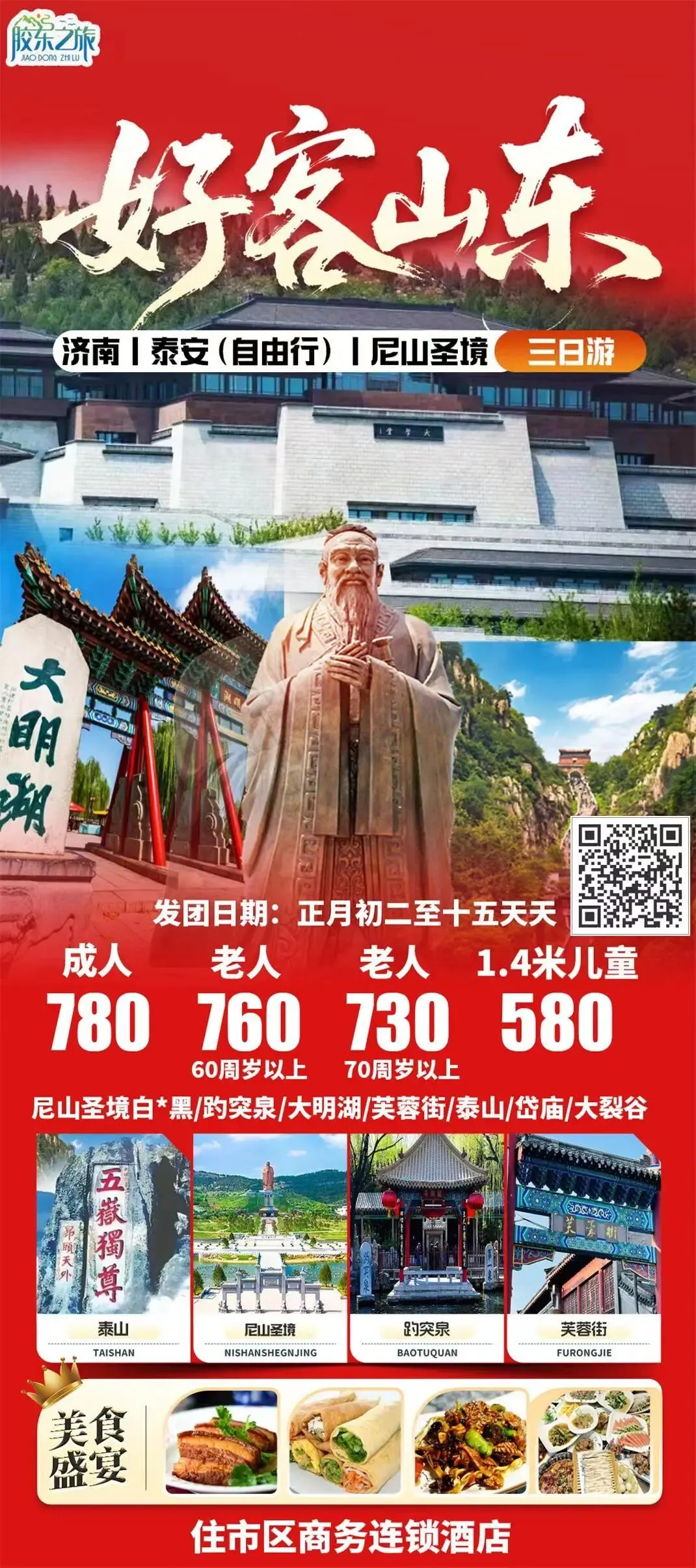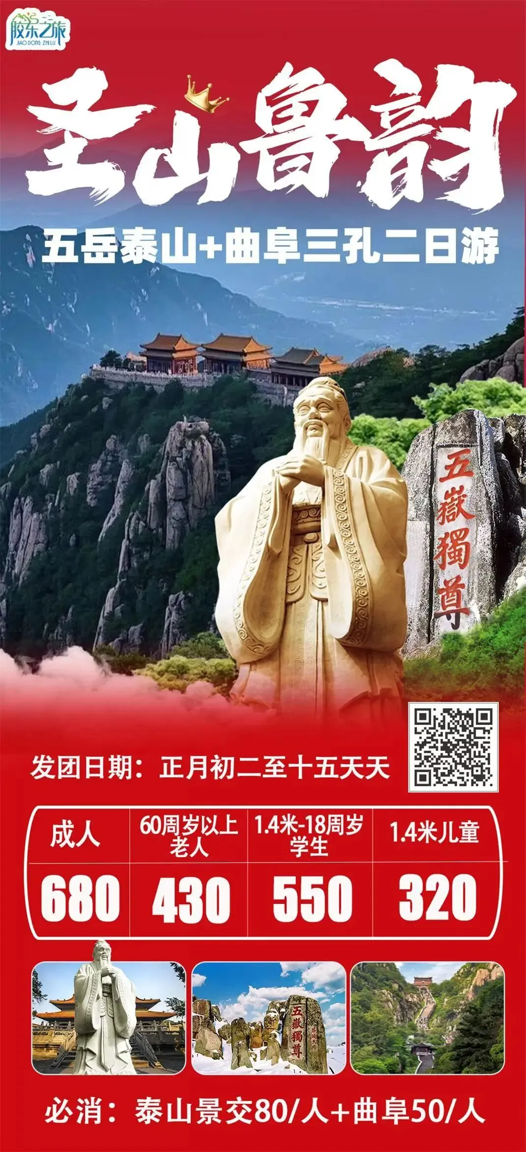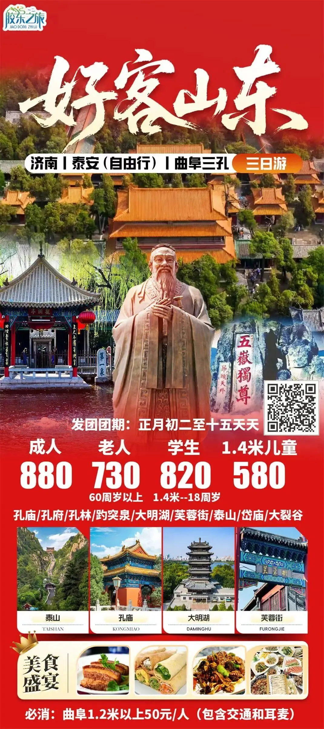 1.曲阜三孔+泰山自由行+济南趵突泉+大明湖+芙蓉街三日游