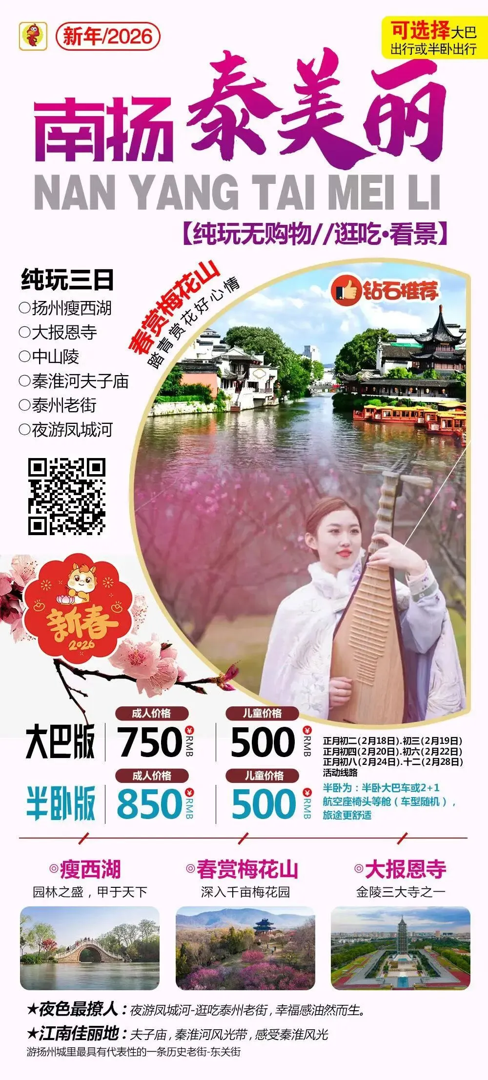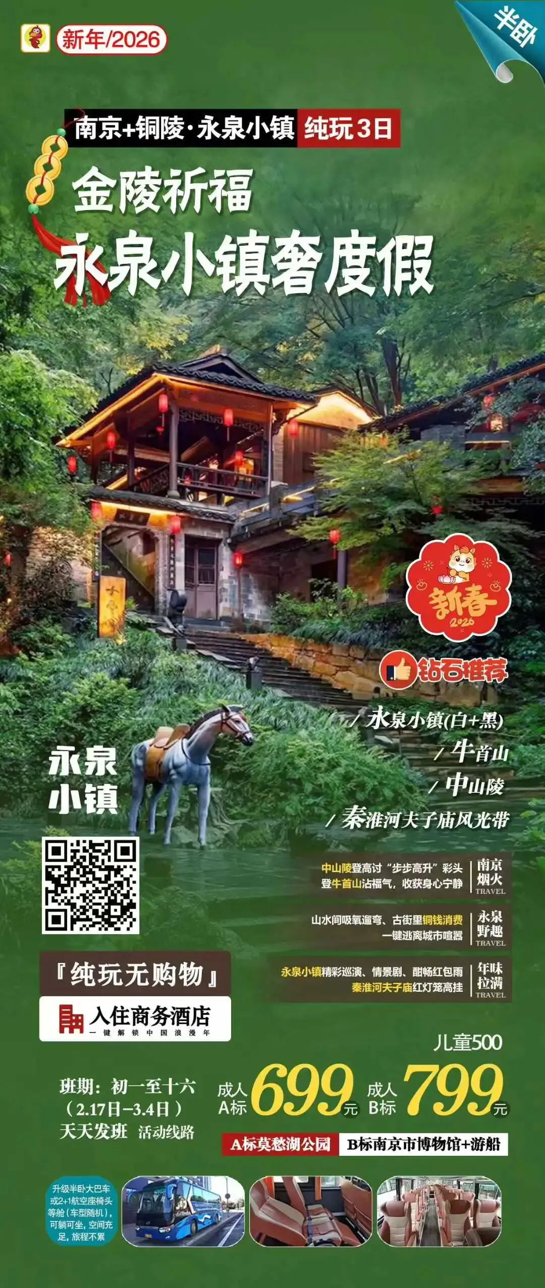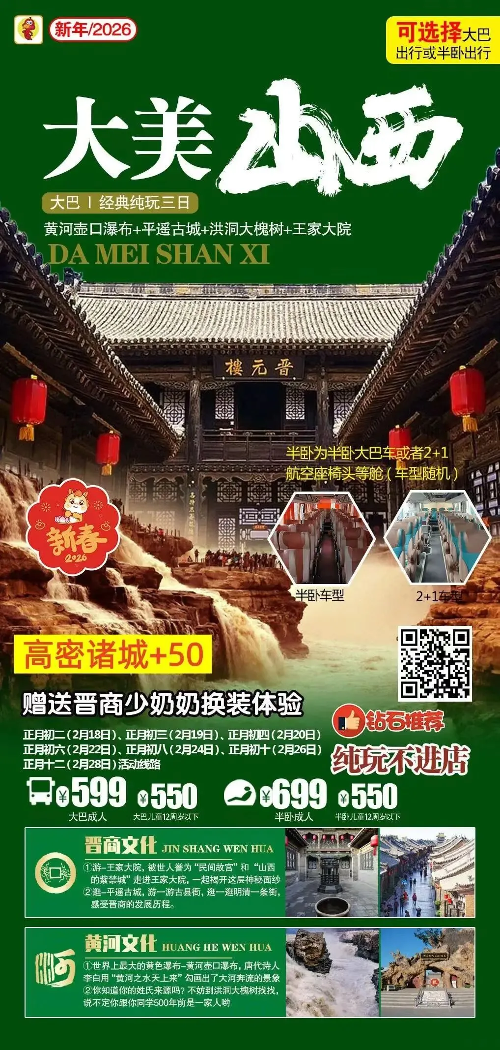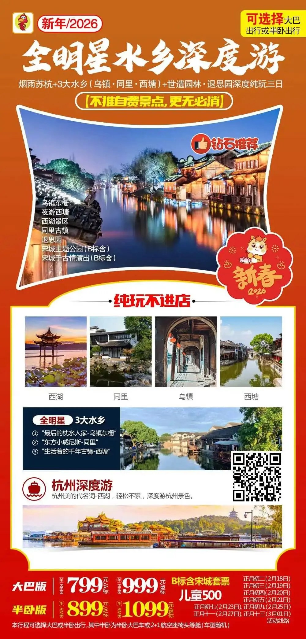 秀水旅游 2026春节【2-3日游】大巴/半卧线路 合集