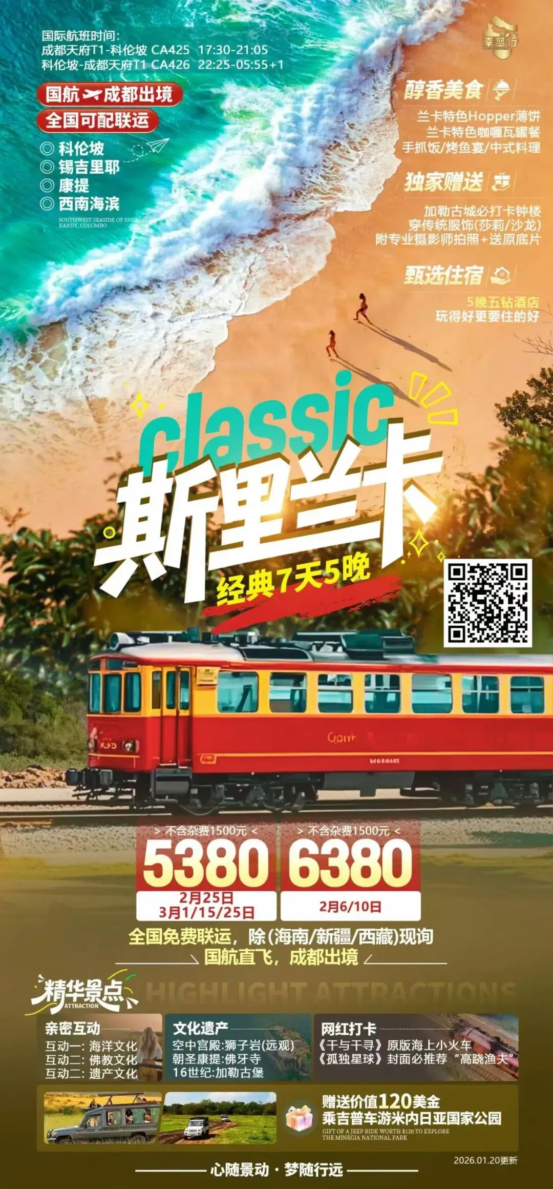 【斯里兰卡】2-3月斯里兰卡旅游产品合集(上海、昆明、成都起止全国联运)