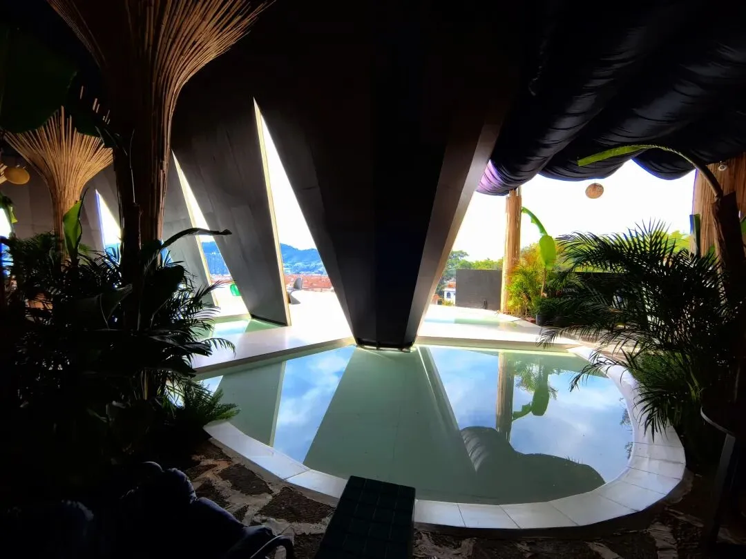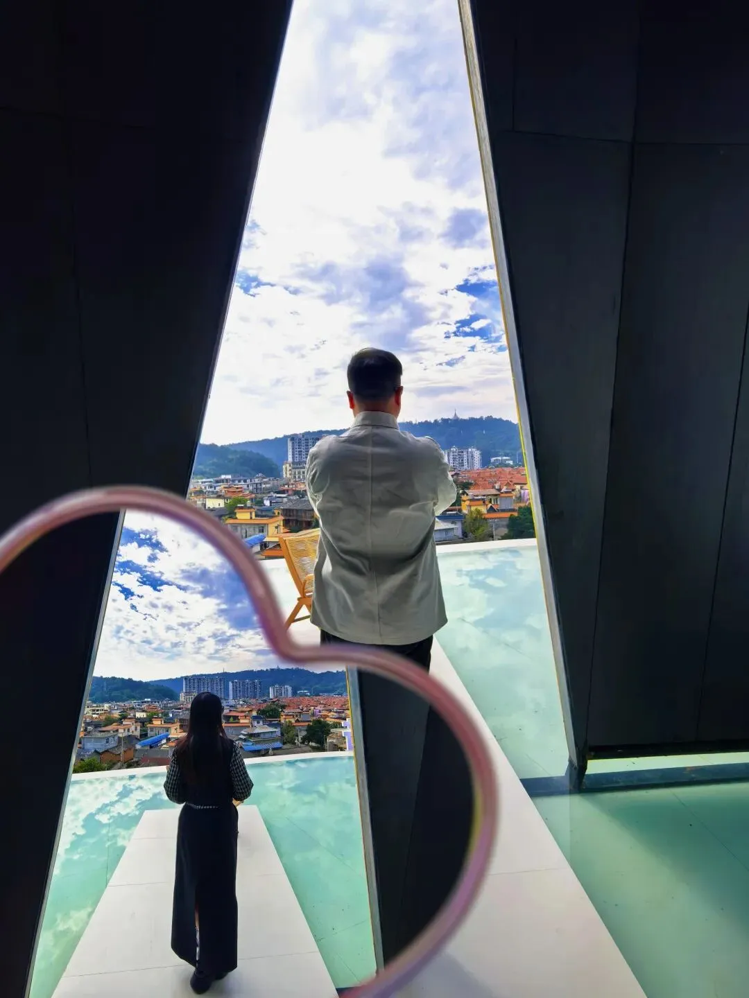 随便找个角落都能出片:镜面打卡点、黑色丝绒布景、三角形的观景窗……每一处都是精心设计的拍照机位。