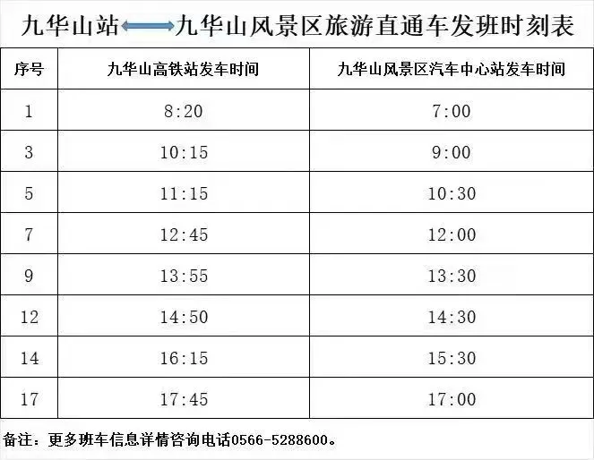 以下分别是池州站、九华山站班线车的时间表,会有淡旺季的变动,仅供家人们参考哦!