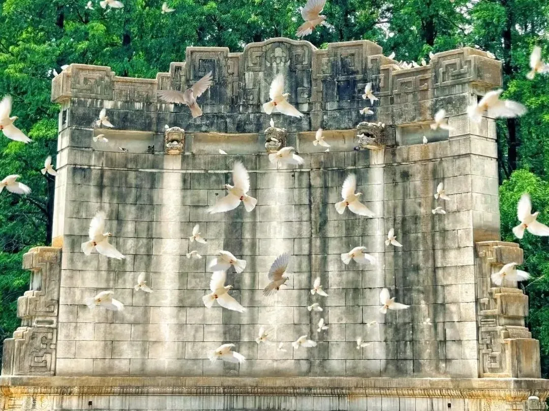 瞻仰伟人陵寝,392级台阶视野开阔。音乐台的鸽子在午后依然活跃,可自带少量玉米粒投喂(中山陵免费预约,音乐台包含在钟山联票内)