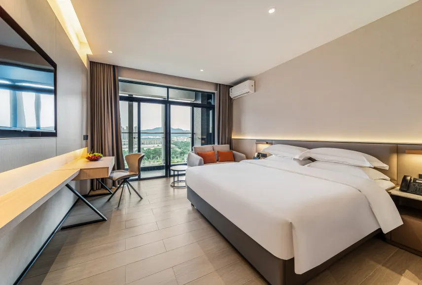 酒店以“简约、时尚、浪漫”为设计理念,房间均配备双层隔音玻璃,提供宁静舒适的休憩环境。
