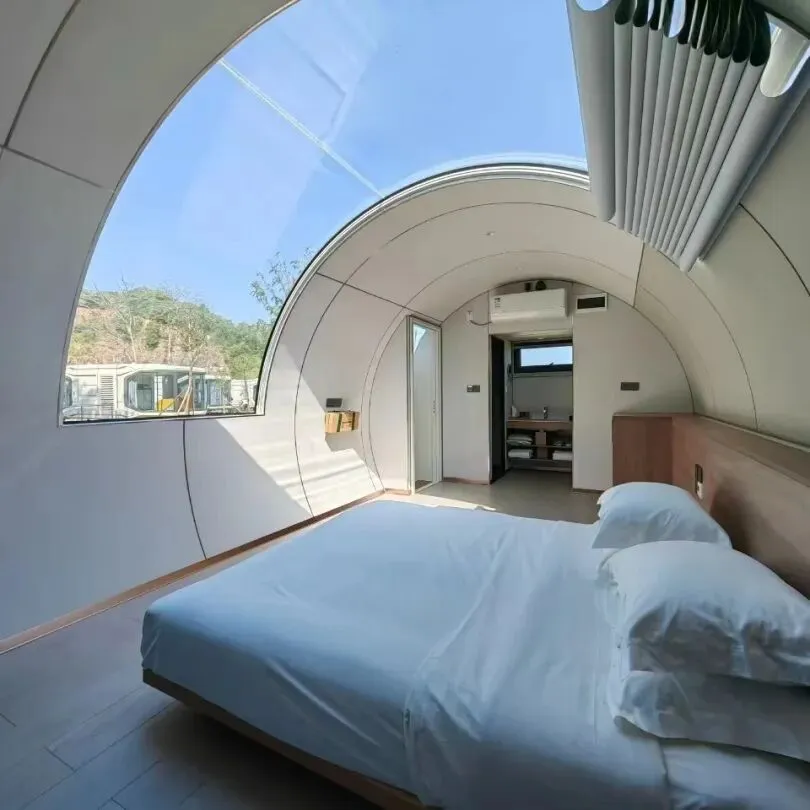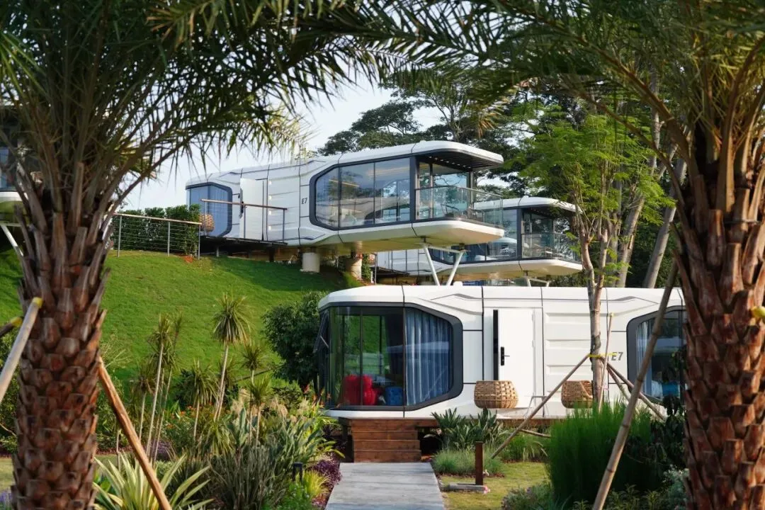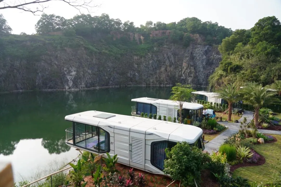 位于冲口村的星舰营地坐落于森林与湖泊之间,一排排科技感十足的太空舱错落分布。每个太空舱均配备舒适床铺、空调、独立卫浴及智能家居系统,亲近自然的同时,享受现代科技带来的便利与舒适。