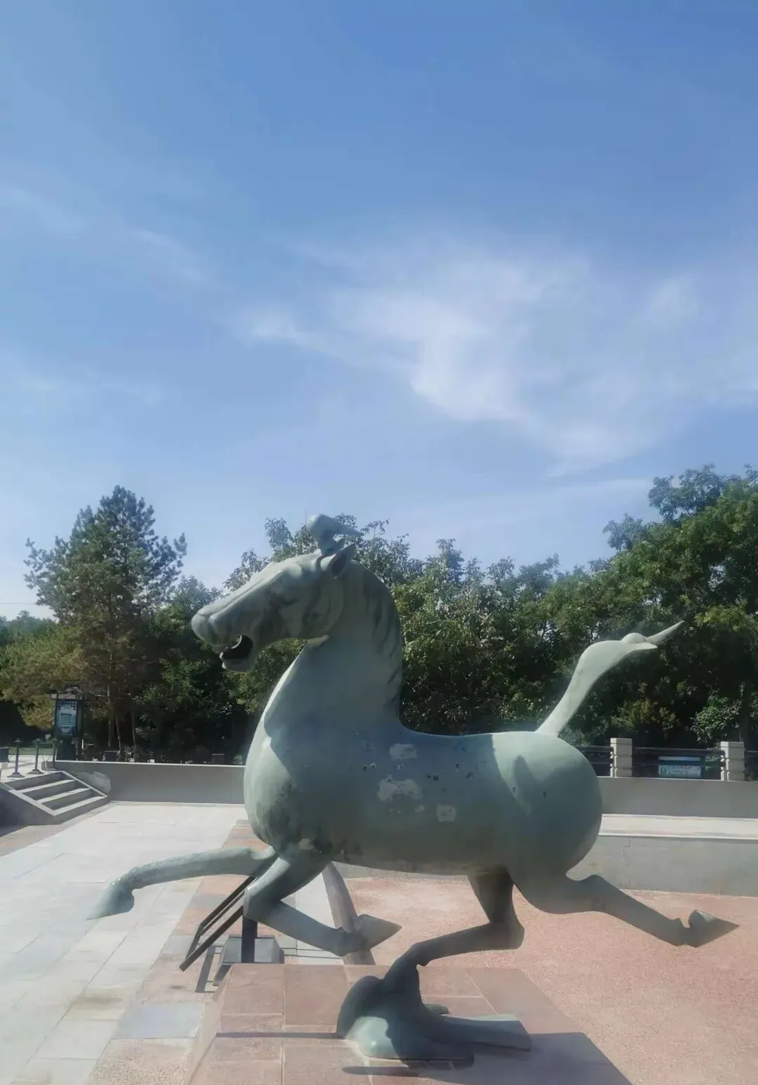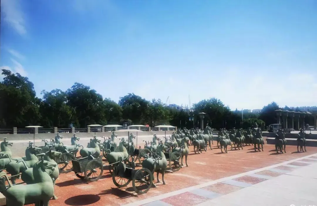 武威作为甘肃省的一个地级城市,它的历史文化背景深厚。 我曾经的敦煌、张掖、酒泉、嘉峪关、武威,一条河西走廊贯穿始终的旅行让我感触其中。尤其是“马踏飞燕”,早已刻在心灵深处。 站在“马踏飞燕”的出土地,那群排列整齐的阵仗很威武...... 马鬃修剪成“三花”,尾巴飞扬,飞燕还回头惊看,动态感超强。它现在是中国旅游的标志,连英国学者都赞它是“东方天马”。
